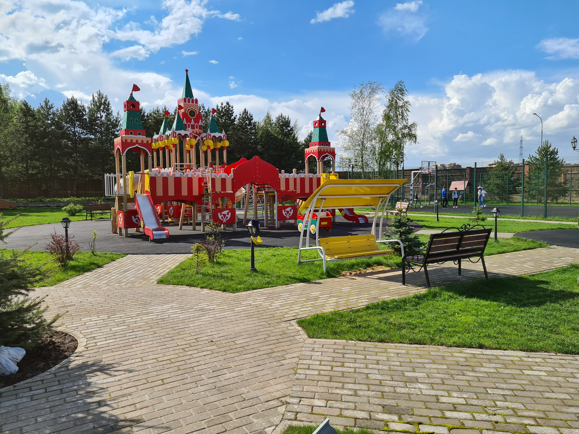 На территории поселка детские и спортивные площадки, есть выход в лес.
