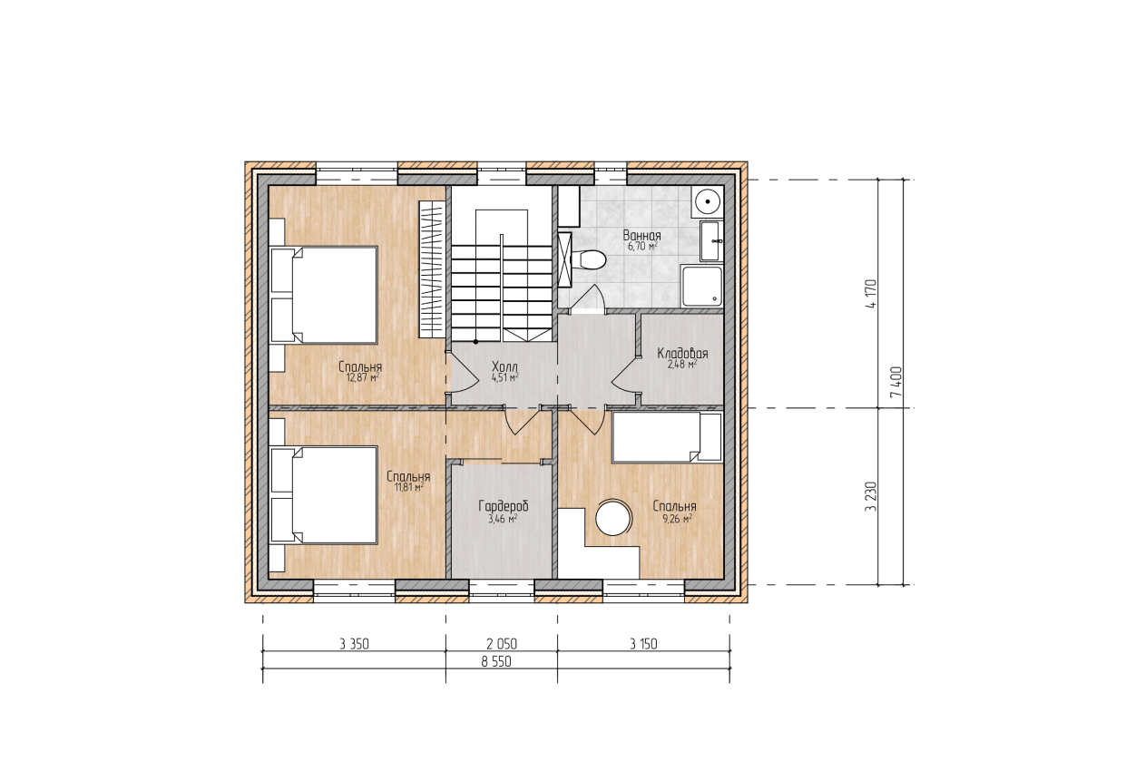 - спальня 12,87 м²