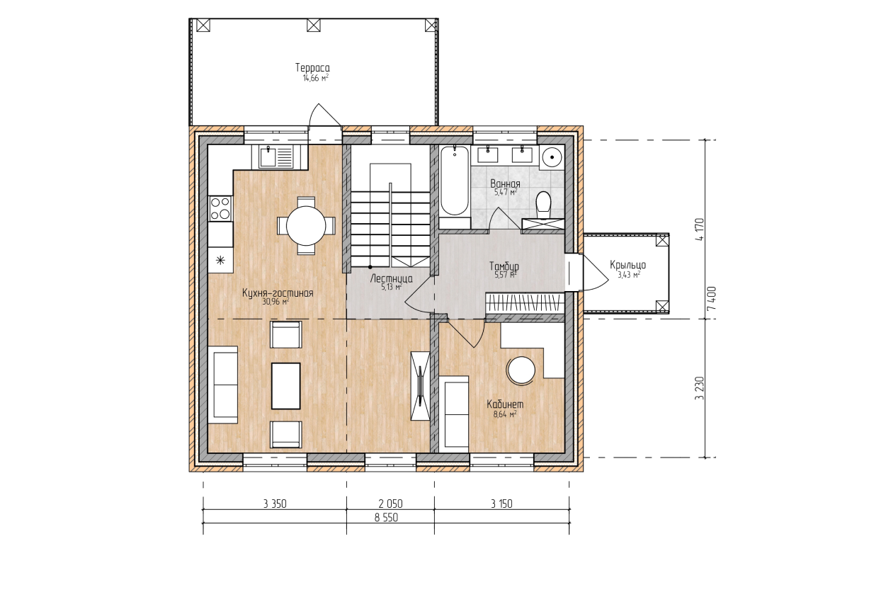- кухня-гостиная 30,96 м²