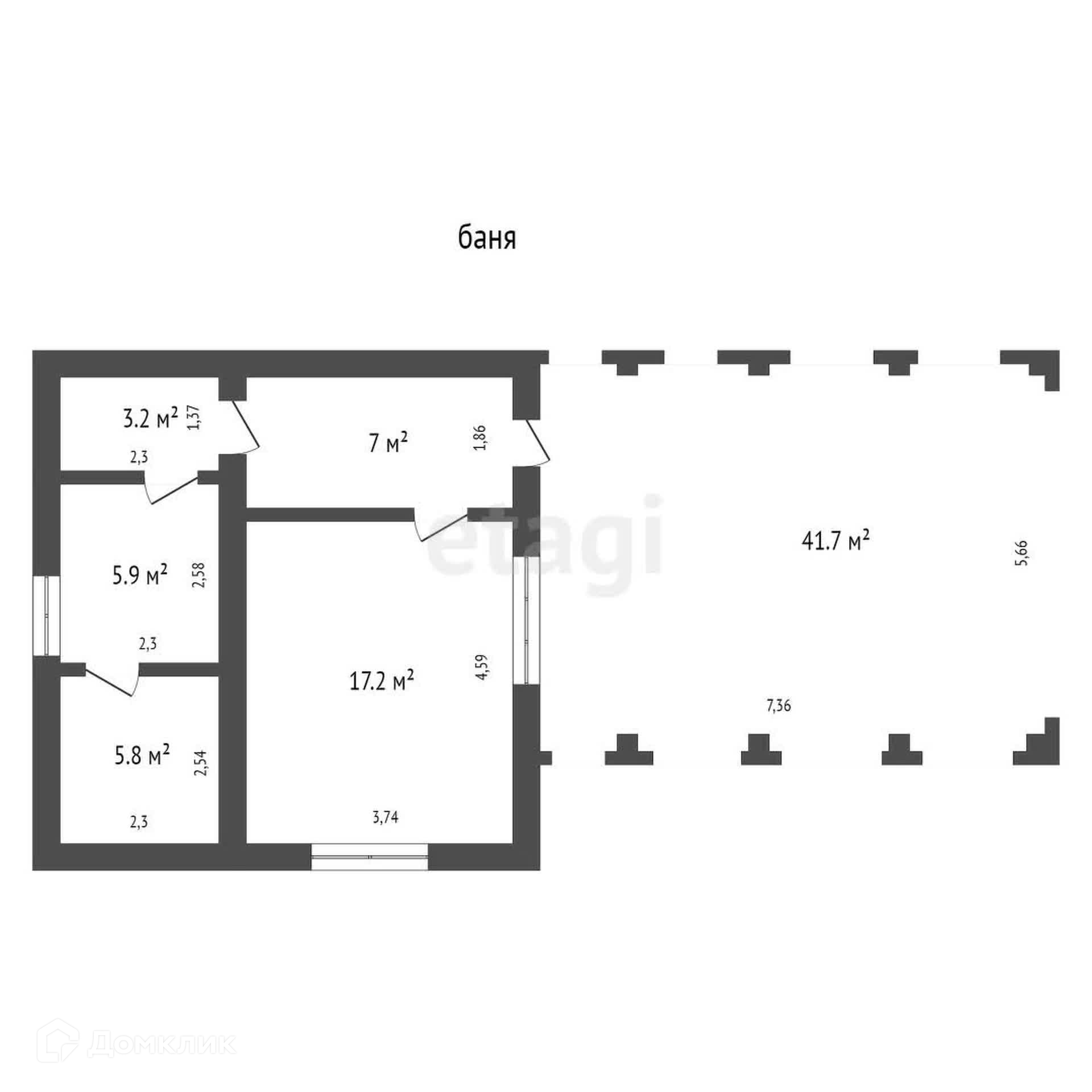 Общая площадь бани 39,1 м2, беседка 41,7м2.