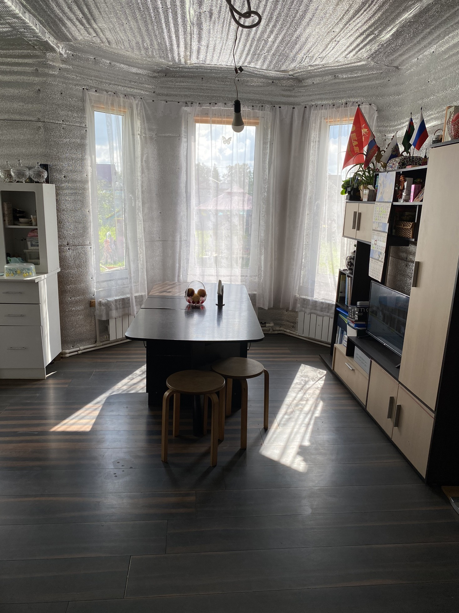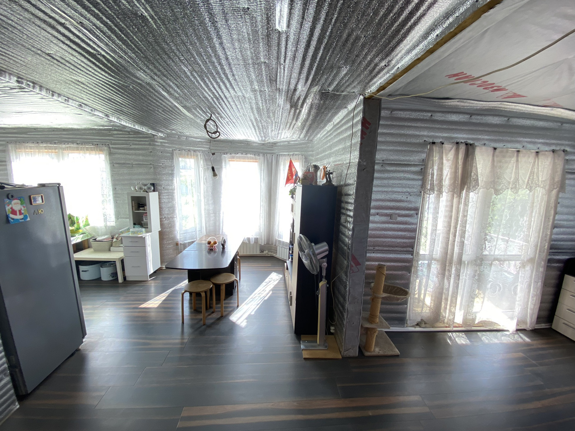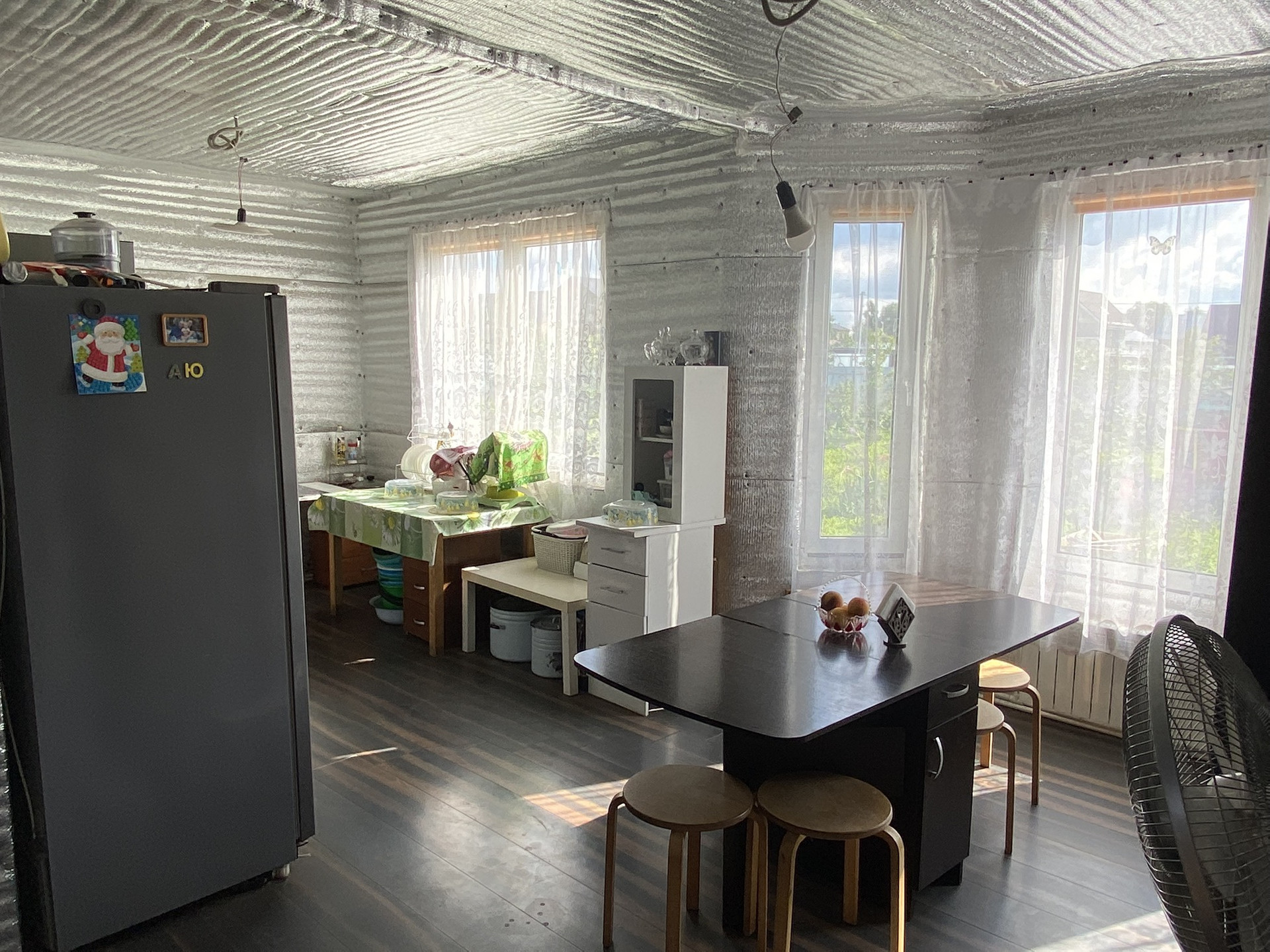 Дом построен по каркасной технологии, очень светлый (в доме 19 окон). Утепление зимнее.