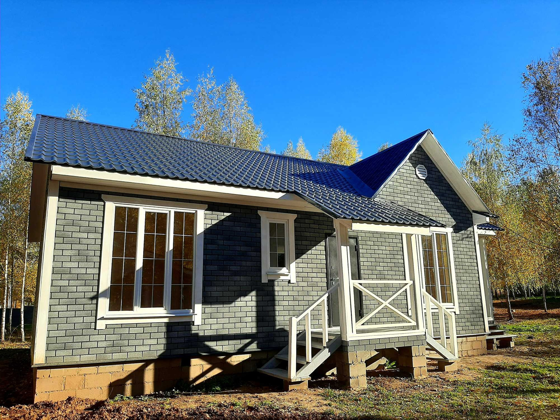 В доме функциональная планировка: крыльцо, тамбур, кухня-гостиная с выходом на просторную веранду, санузел, холл, три полноценные комнаты.