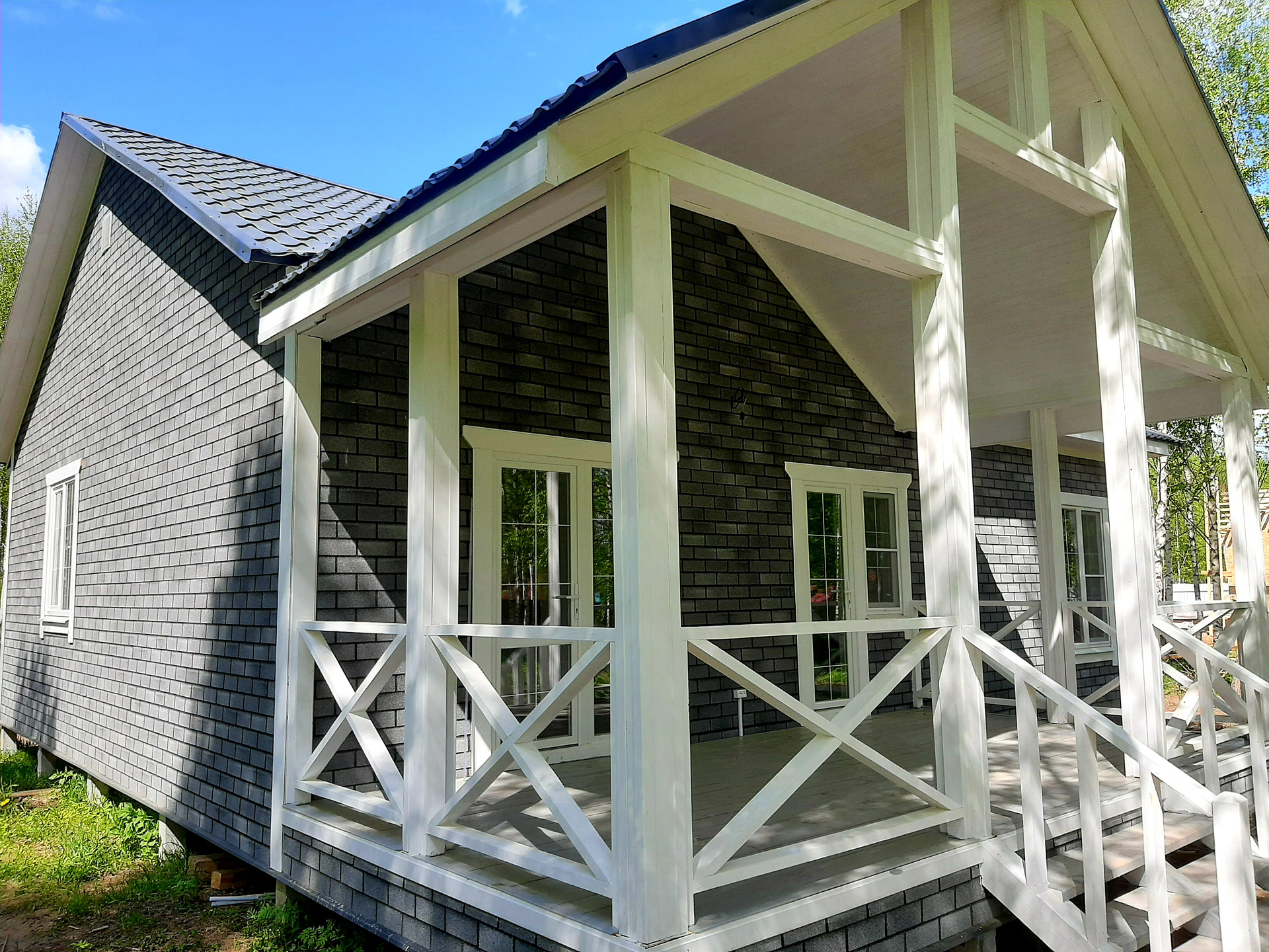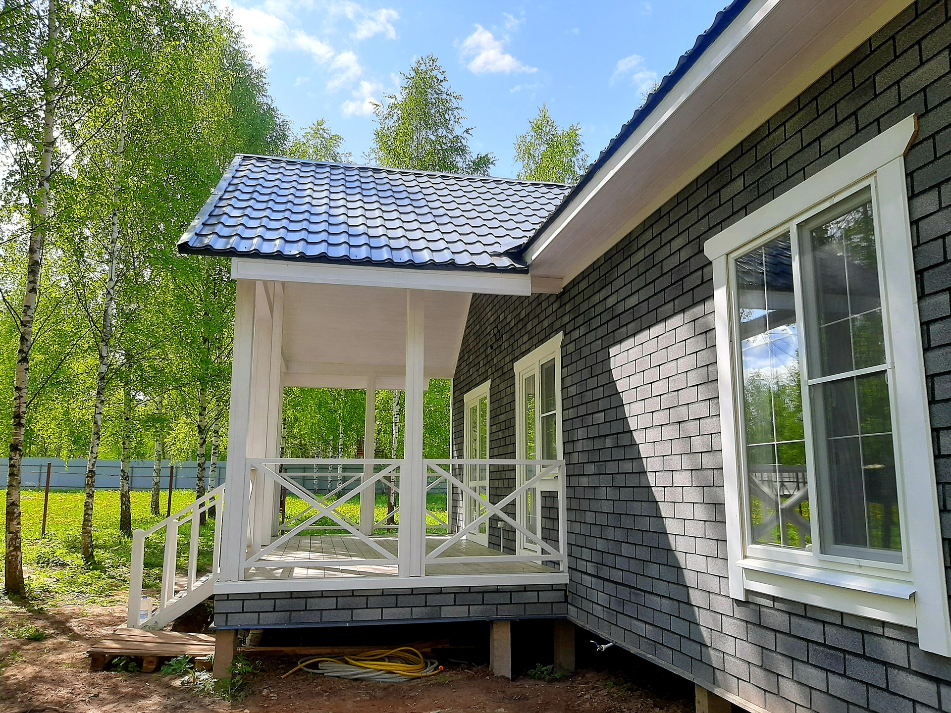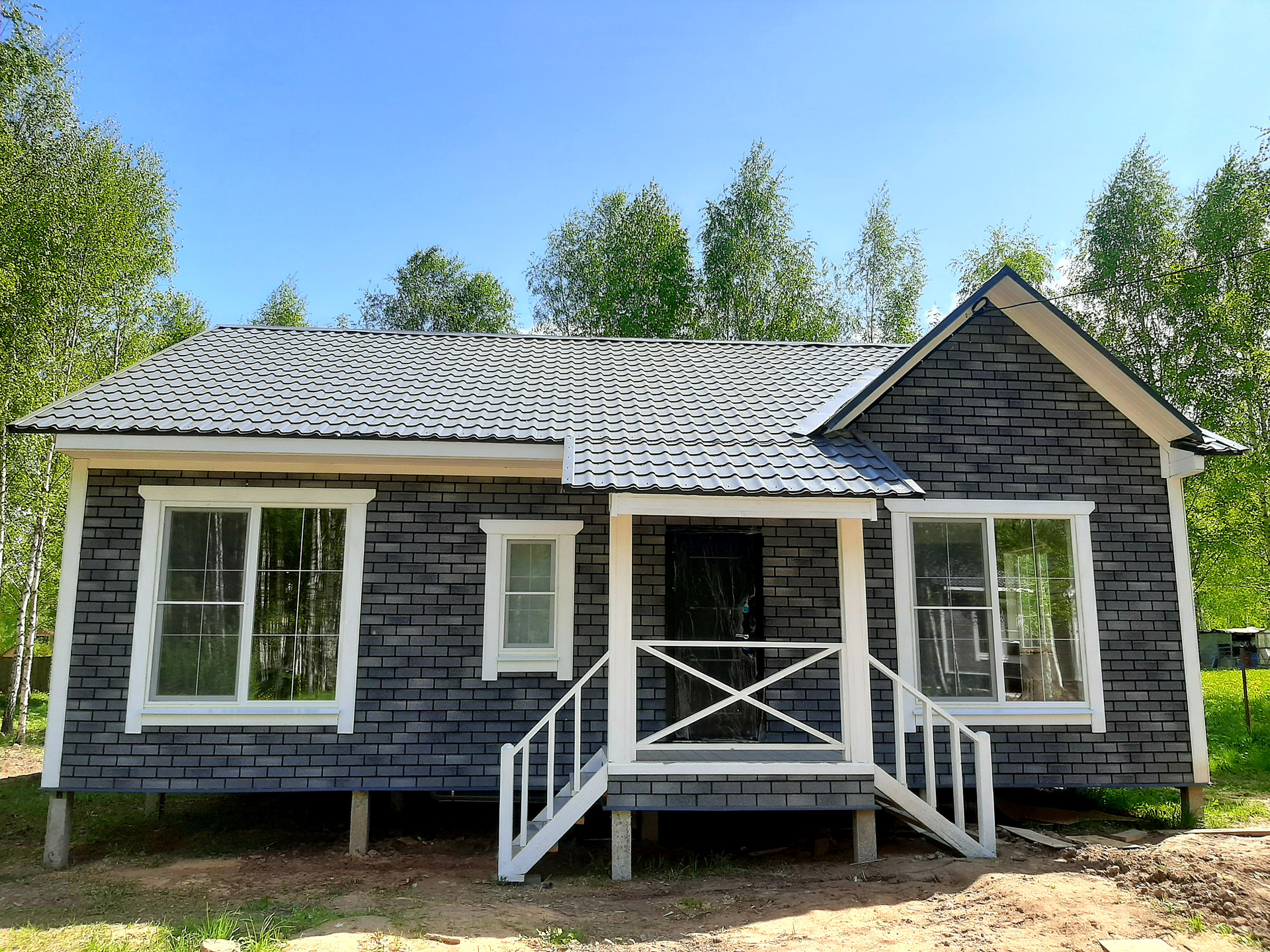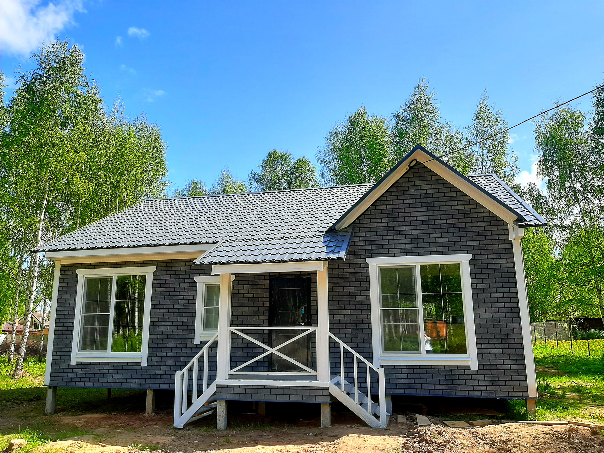 В доме функциональная планировка: крыльцо, тамбур, кухня-гостиная с выходом на просторную веранду, санузел, холл, три полноценные комнаты.