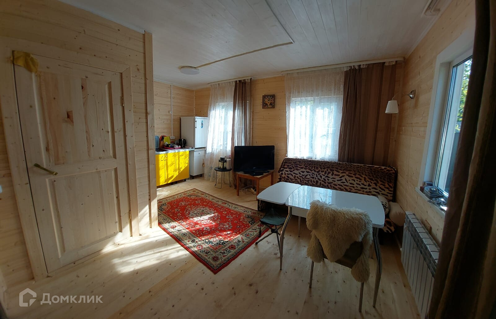 В доме находится кухня гостиная, спальня, сан.узел совмещен.