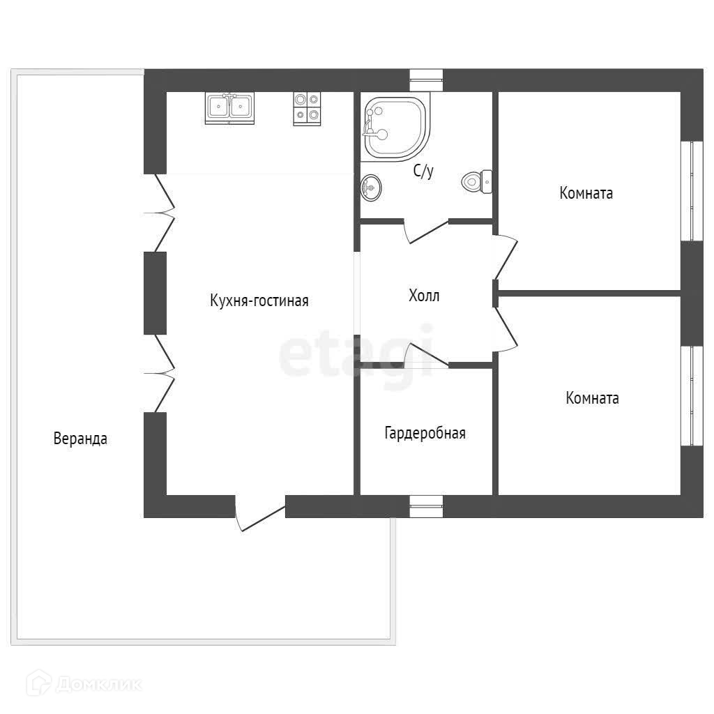 1-этажный дом, 67 м2, на продажу в ДНП Заозёрье, 3-й Полевой проезд