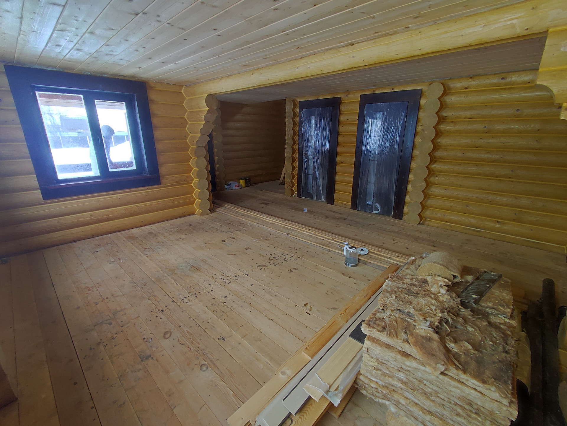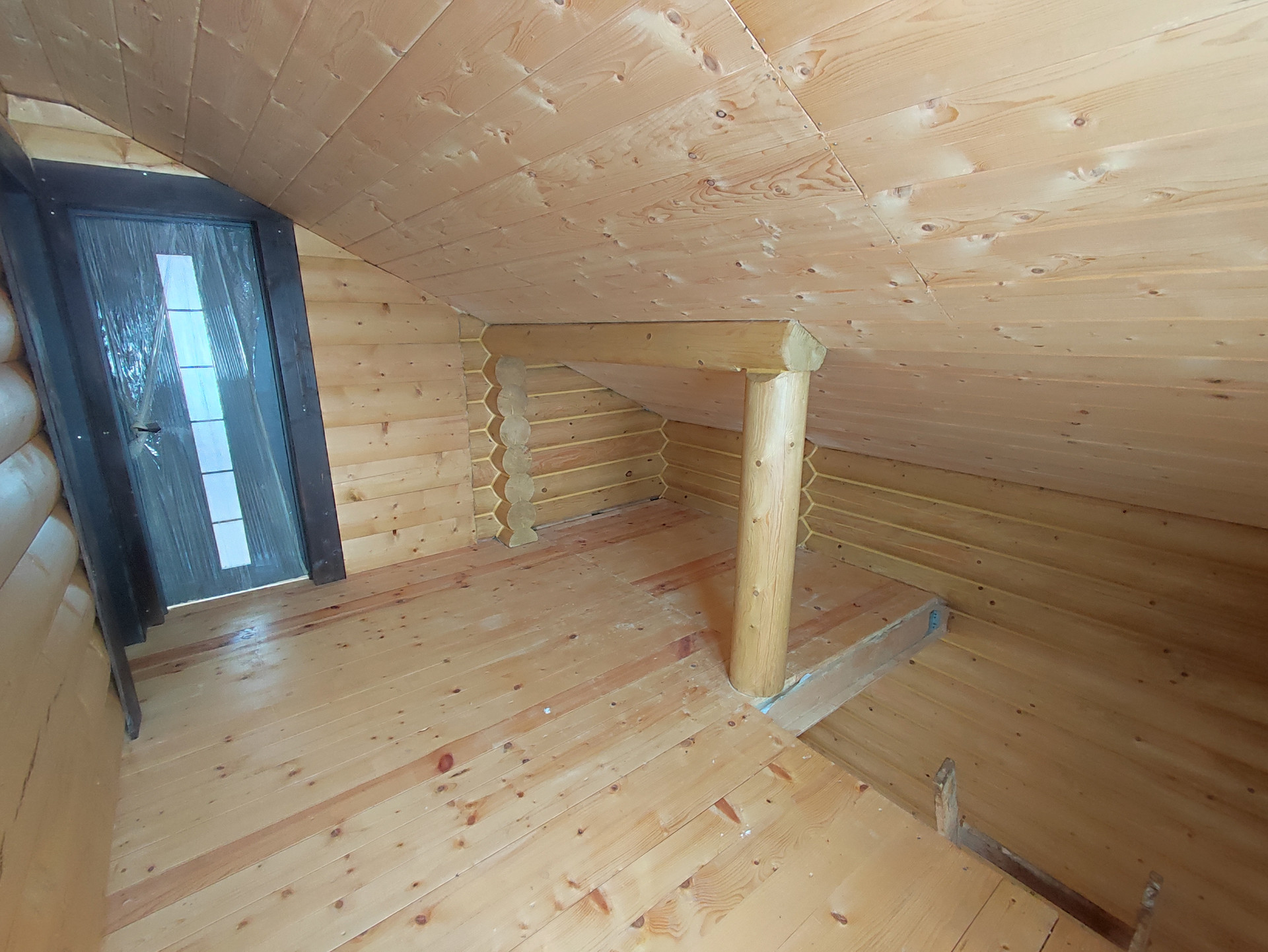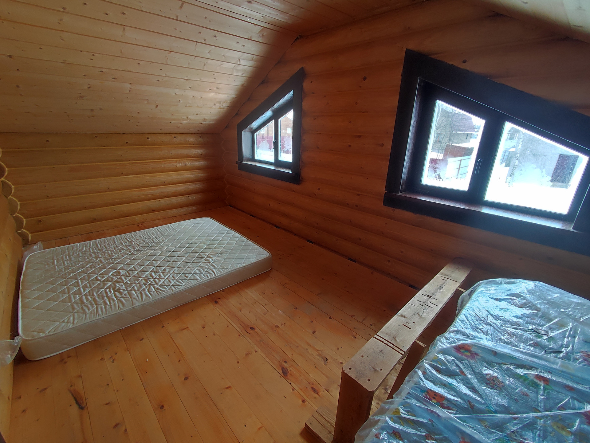 В доме просторная кухня гостиная на первом этаже, сауна и место под санузел. На втором этаже две спальные комнаты.
