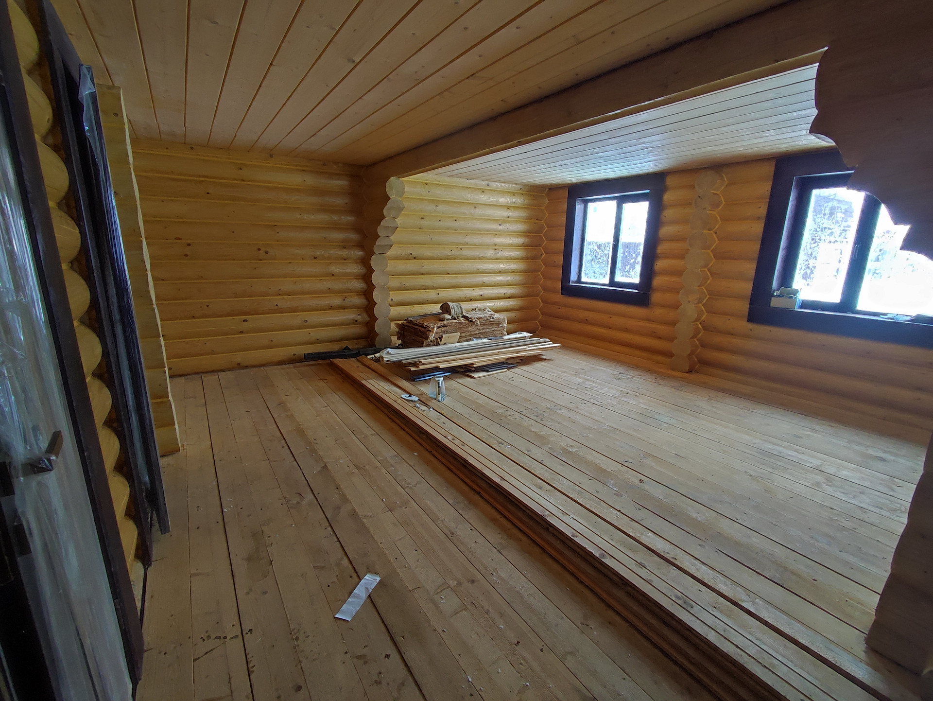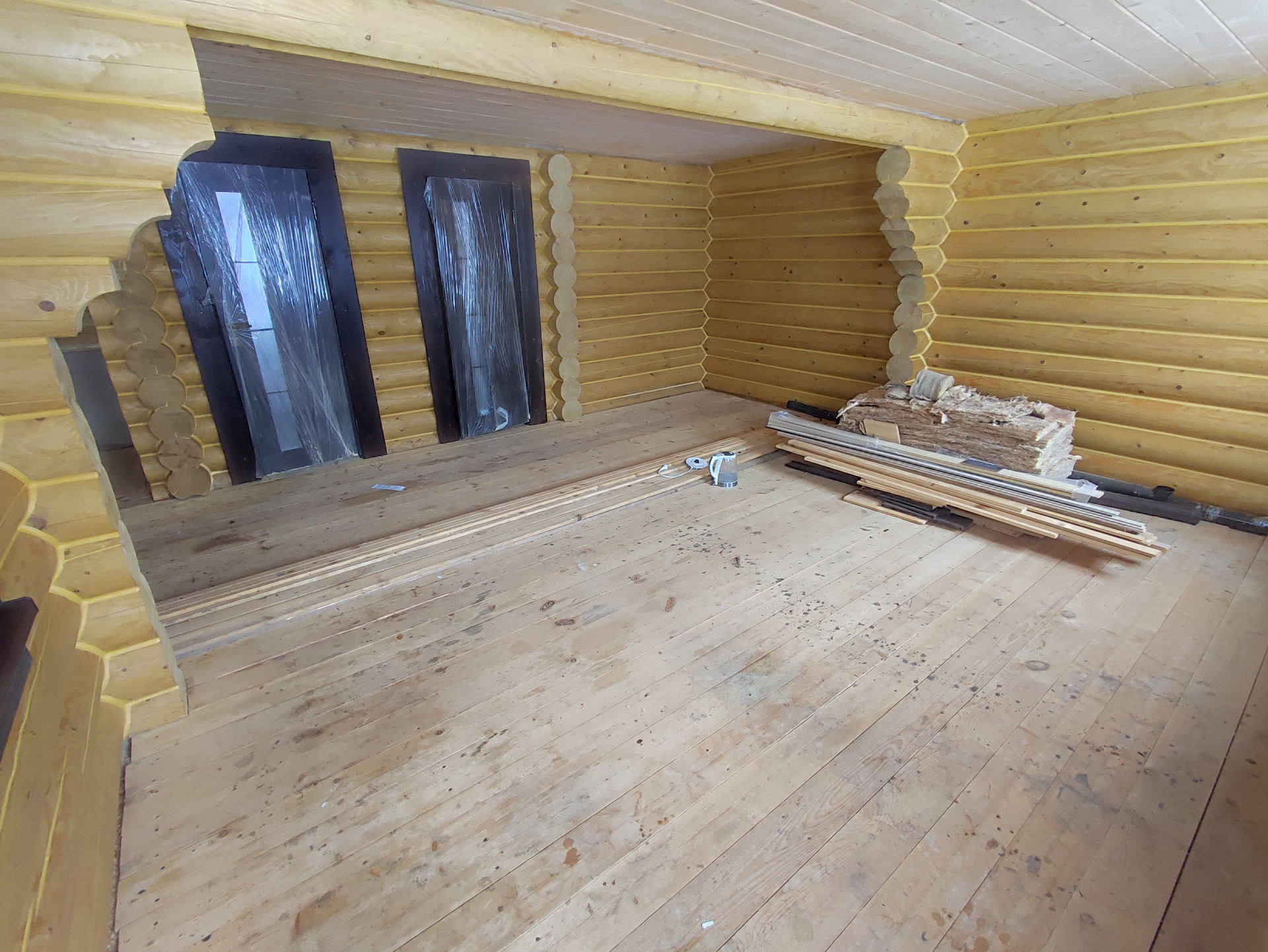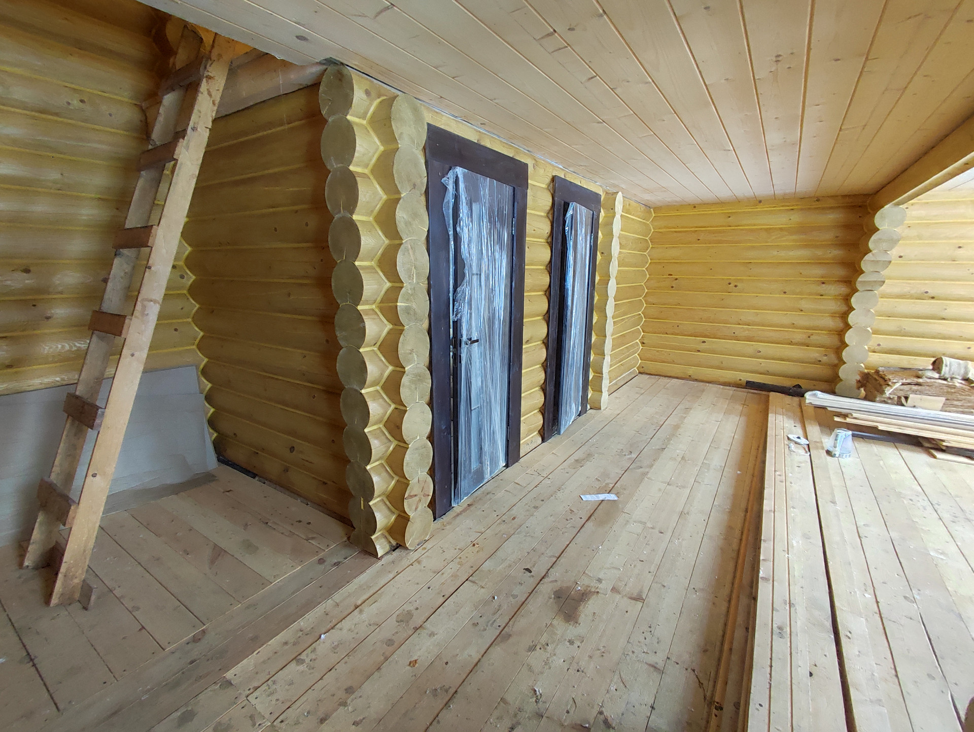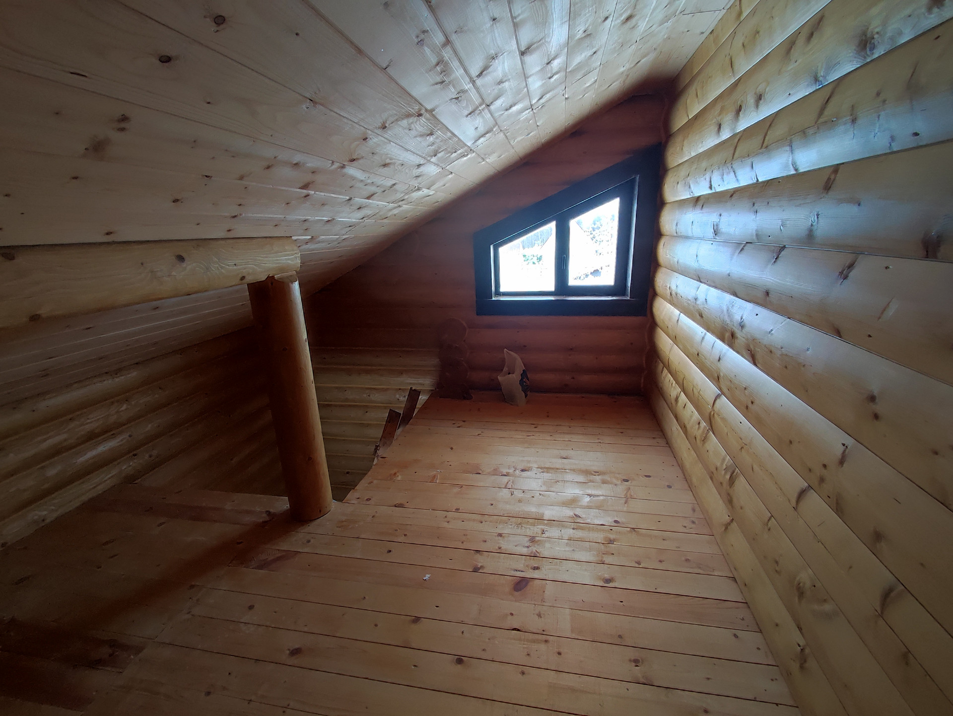В доме просторная кухня гостиная на первом этаже, сауна и место под санузел. На втором этаже две спальные комнаты.