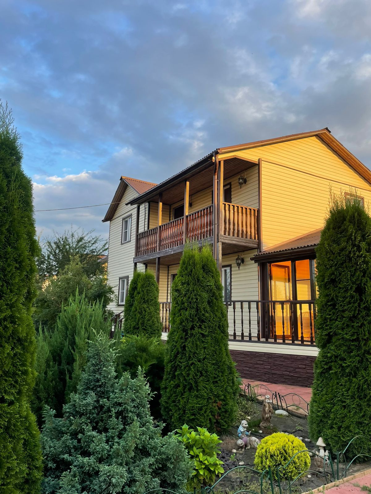 На 1 этаже: кухня-гостиная, спальня и санузел с душевой кабиной. На 2 этаже: 3 спальни и санузел. Есть отдельная застеклённая веранда. Перед верандой, имеется зона для гриля/шашлыков и казана. В бытовке есть весь необходимый садовый инвентарь, в том числе газонокосилка.