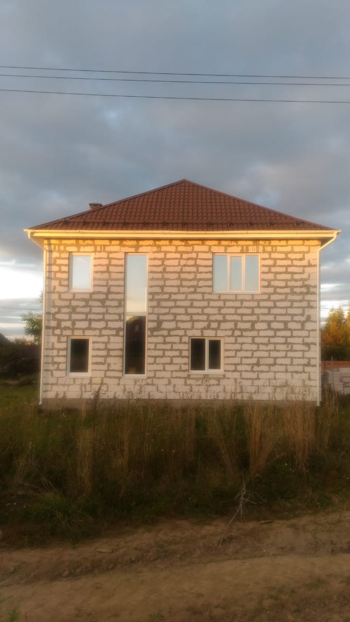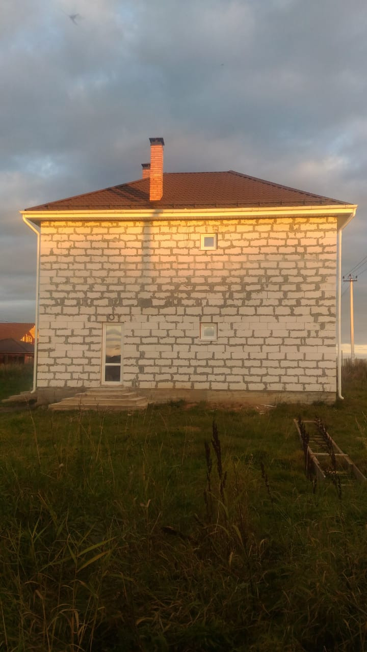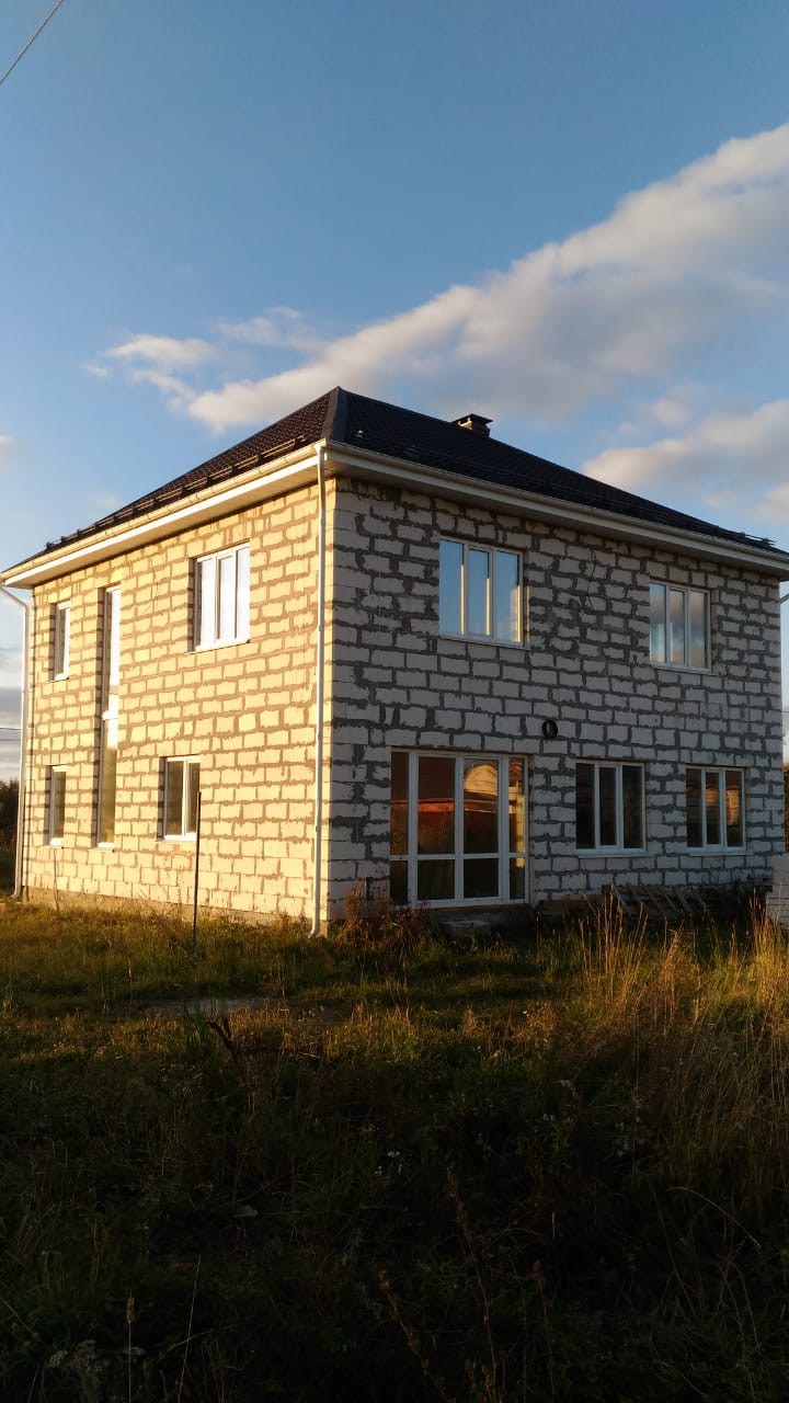Продаю новый, основательно и с любовью построенный дом в 8 км от г. Бронницы по Новорязанскому ш. (52 км от МКАД) в ДНП "Земляничные поля-2". Дом из газосиликатного блока заводского производства (EL BLOK 600*250*400) полностью готов к внутренней отделке. Фундамент - монолит, крыша - металлочерепица, 3 входа, черновой пол, перегородки, по всему дому разведено электричество (в бойлерной собран щит), сделаны выводы под сантехнику, стиральную и посудомоечную машины, стеклопакеты (Rehau Edinburg), действующий камин. Половая доска второго этажа 5 см, третий этаж утеплён (можно использовать как дополнительную комнату). Деревянные детали обработаны. В бойлерной выведена труба под котёл. На участке вырыт колодец. Соседний участок 6 соток куплен давно, но не освоен (можно выкупить). С других сторон соседей нет! Дому присвоен почтовый адрес, есть домовая книга - можно делать постоянную регистрацию. В шаговой доступности продуктовые и строительные магазины, автобусные остановки. Возможна постоянная регистрация. Один собственник. Собран полный пакет документов на землю и дом, можем быстро выйти на сделку. Цена обсуждается после просмотра.