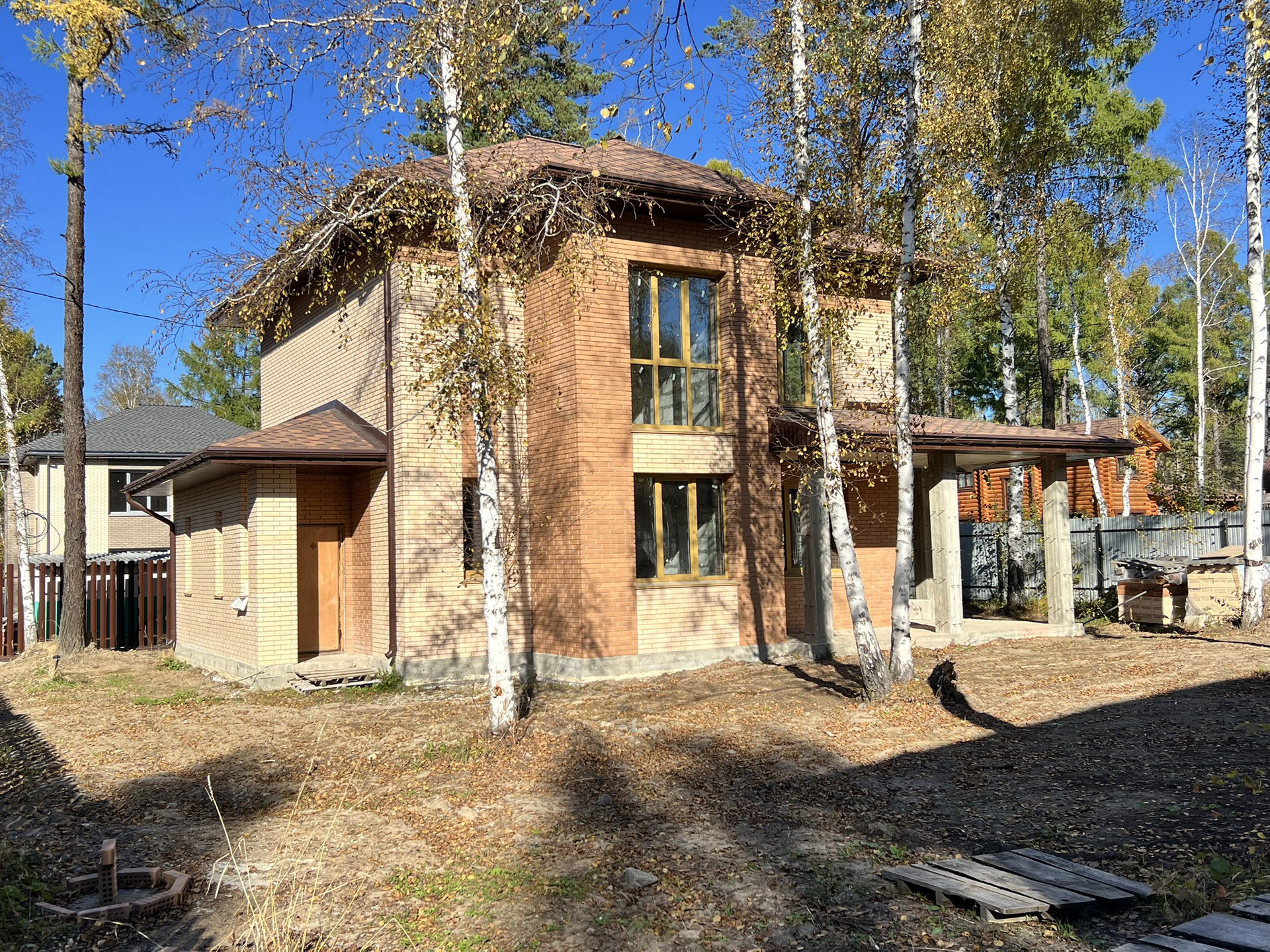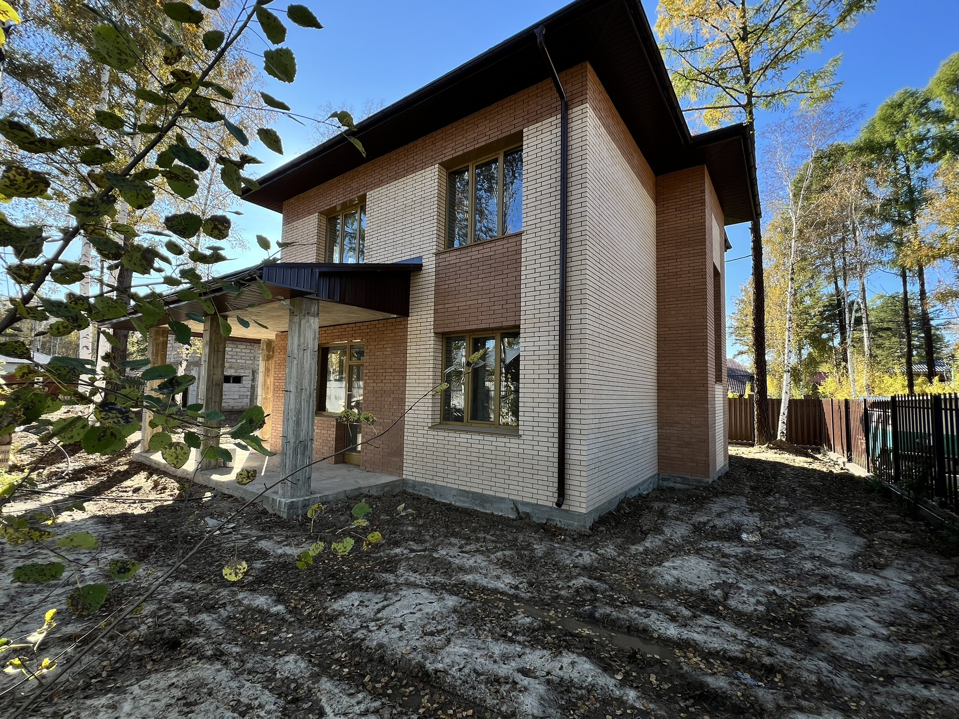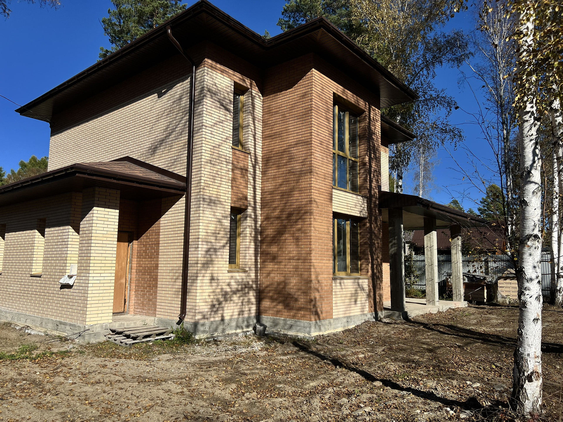 2-х этажный дом, из газобетона, облицован кирпичом