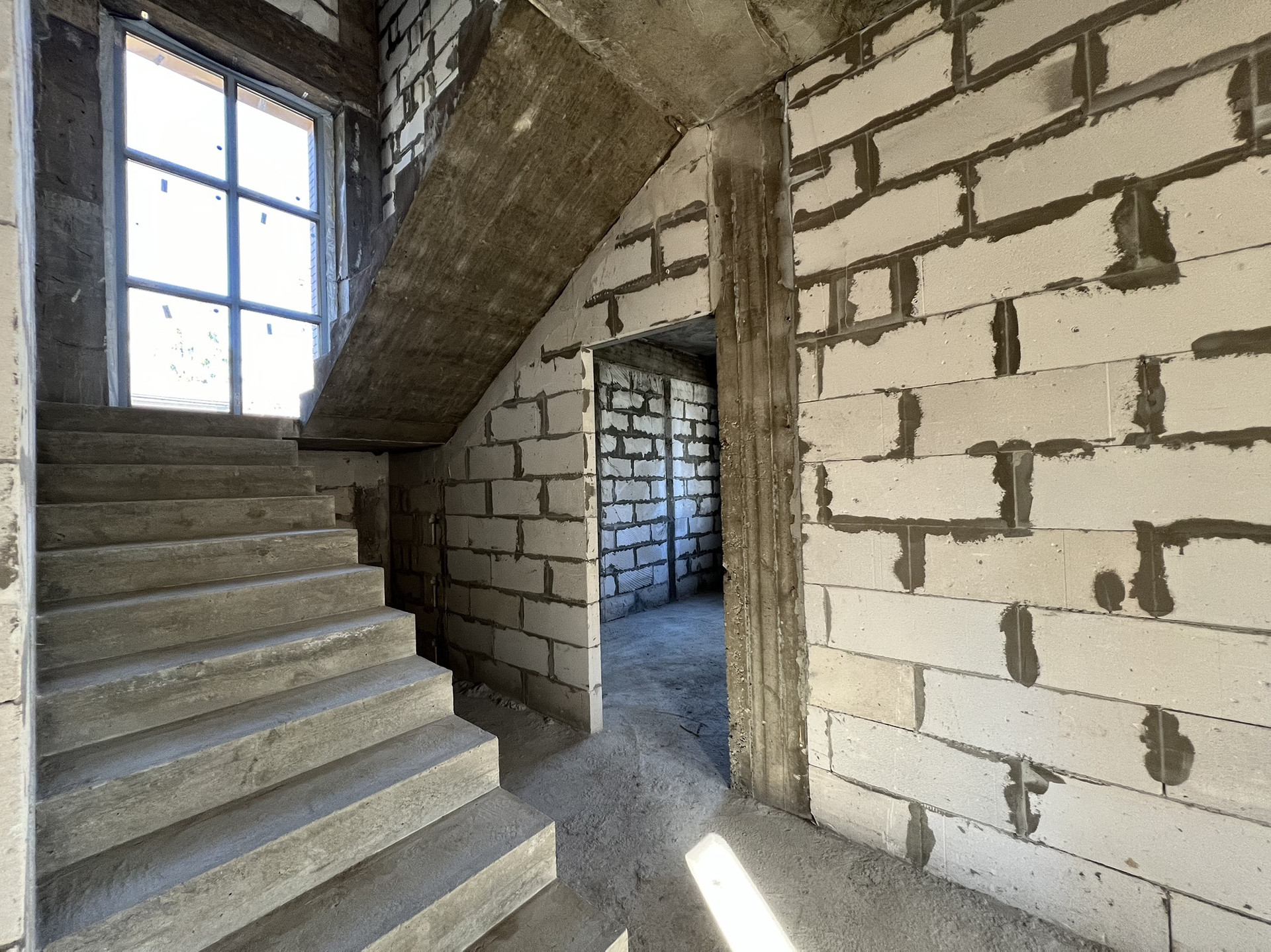 + монолитная лестница с витражным окном