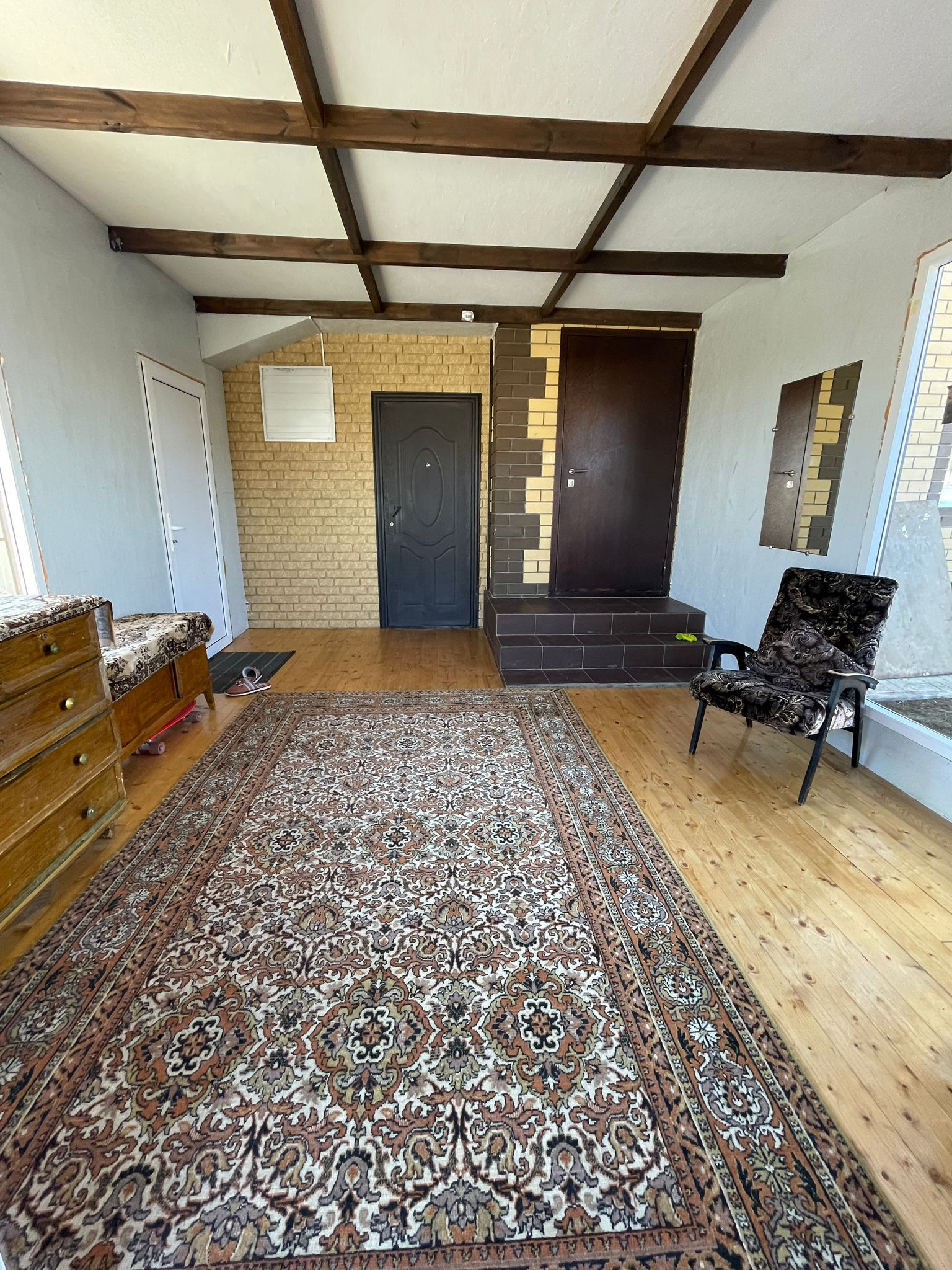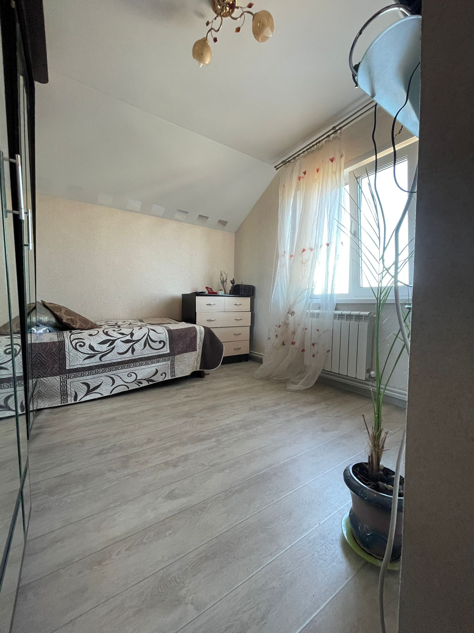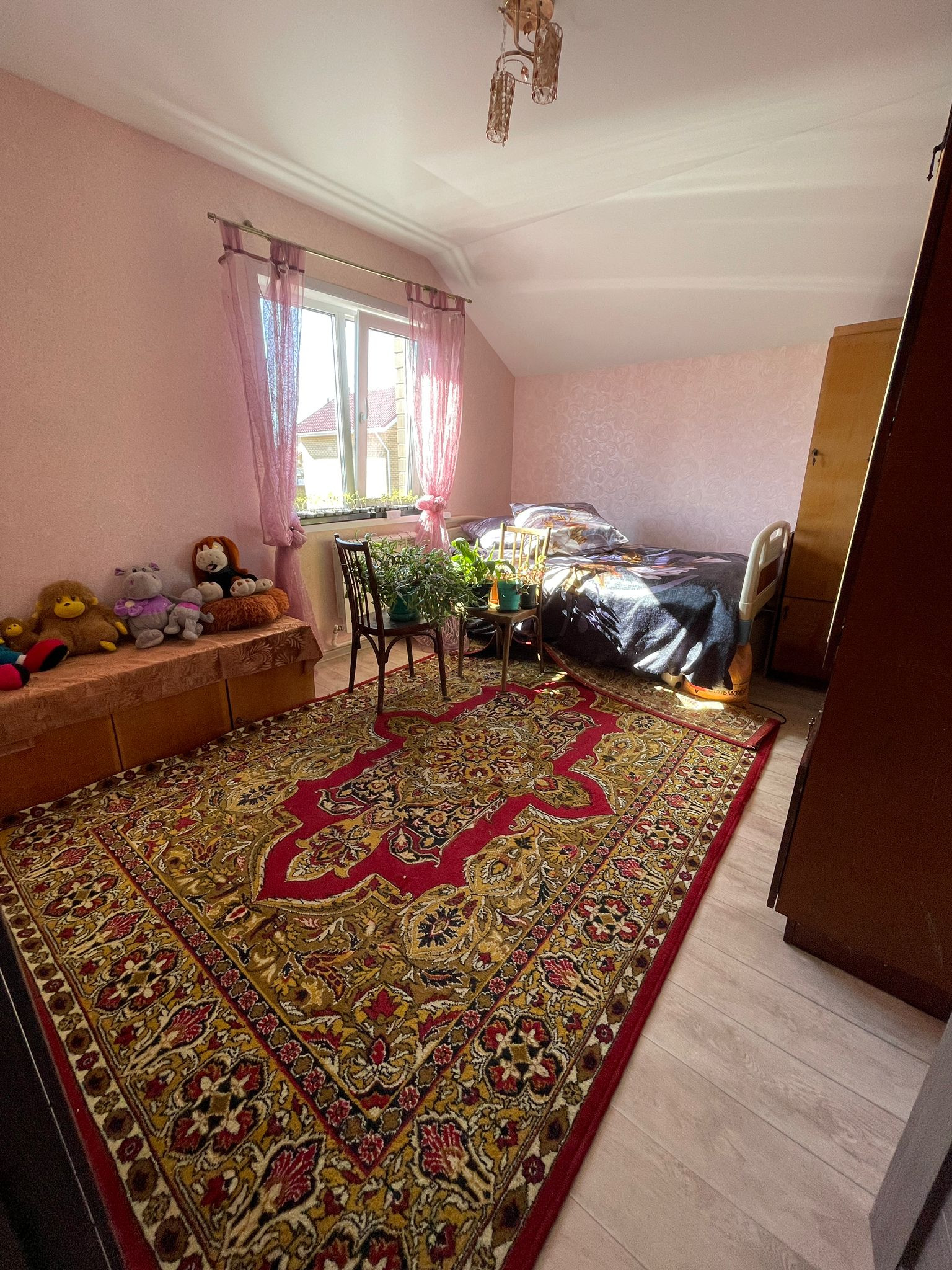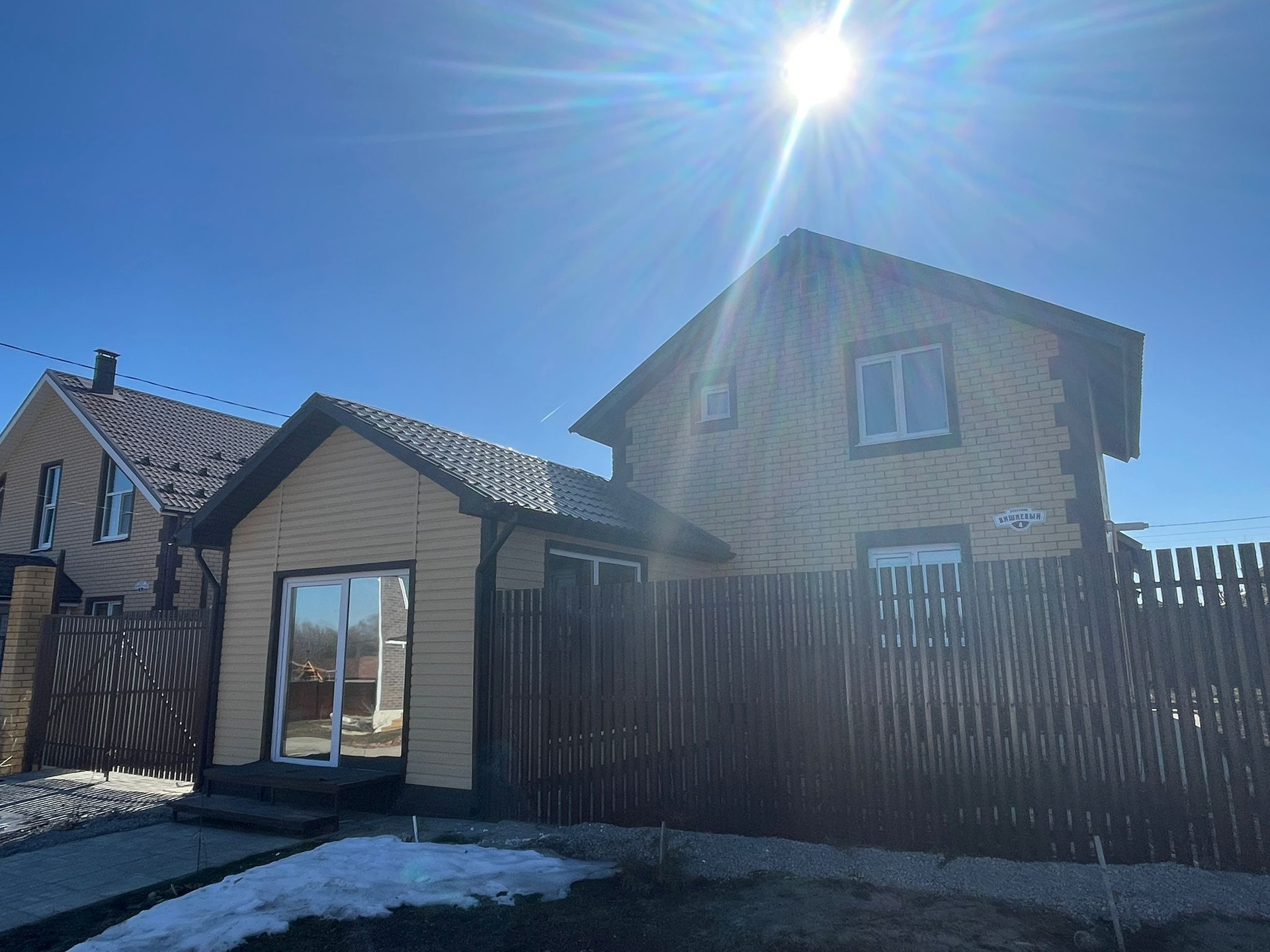 В поселке очень чисто , кругом асфальт, детские площадки, фонари по улицам, недалеко озеро и лес. Школа и детский сад находятся поблизости. Общая площадь 110 кв. м. вместе с верандой, 1 этаж: прихожая, кухня- гостиная, санузел, кладовка. 2 этаж: две спальные комнаты, санузел, гардеробная. Остается новый кухонный гарнитур. Плодоносящий сад (две груши, три яблони, малина черная, виктория, слива желтая и др. ) , розарий, теплица 8 метров, сарай. Торг уместен. Переулок Вишневый.