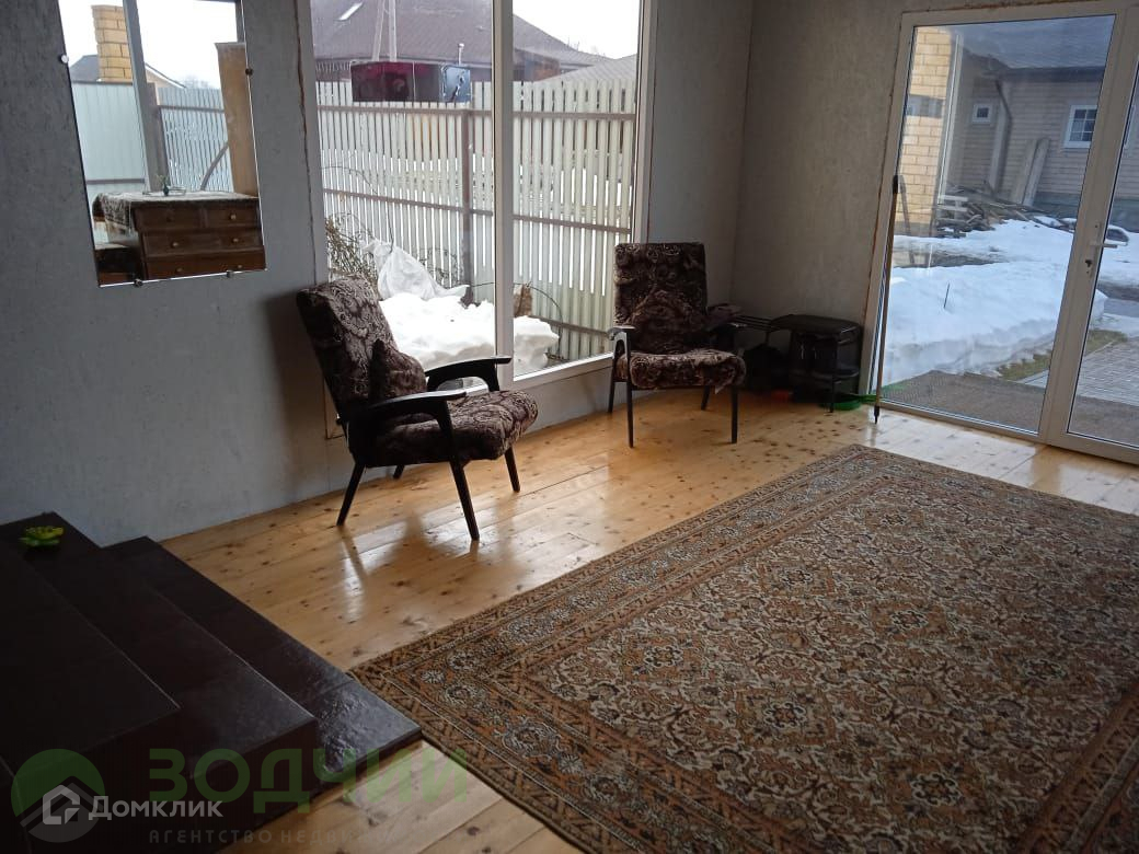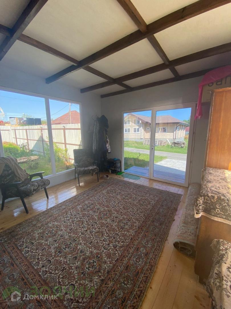 Общая площадь коттеджа 110 м2 вместе с верандой, 1 этаж: прихожая, кухня- гостиная, санузел и кладовка. 2 этаж: две спальные комнаты, санузел и гардеробная,остается новый кухонный гарнитур.