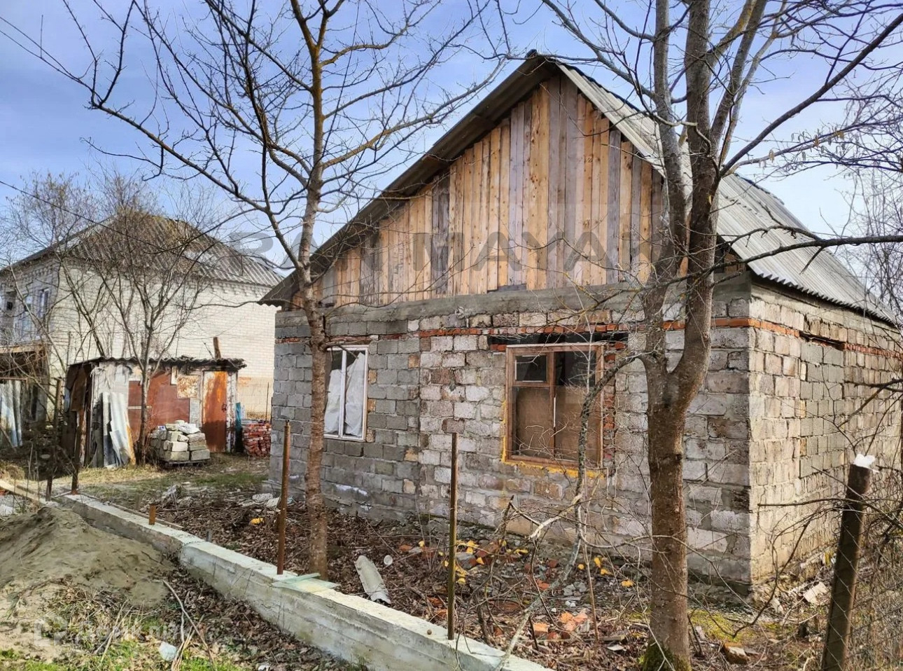 На участке располагается блочный дом.