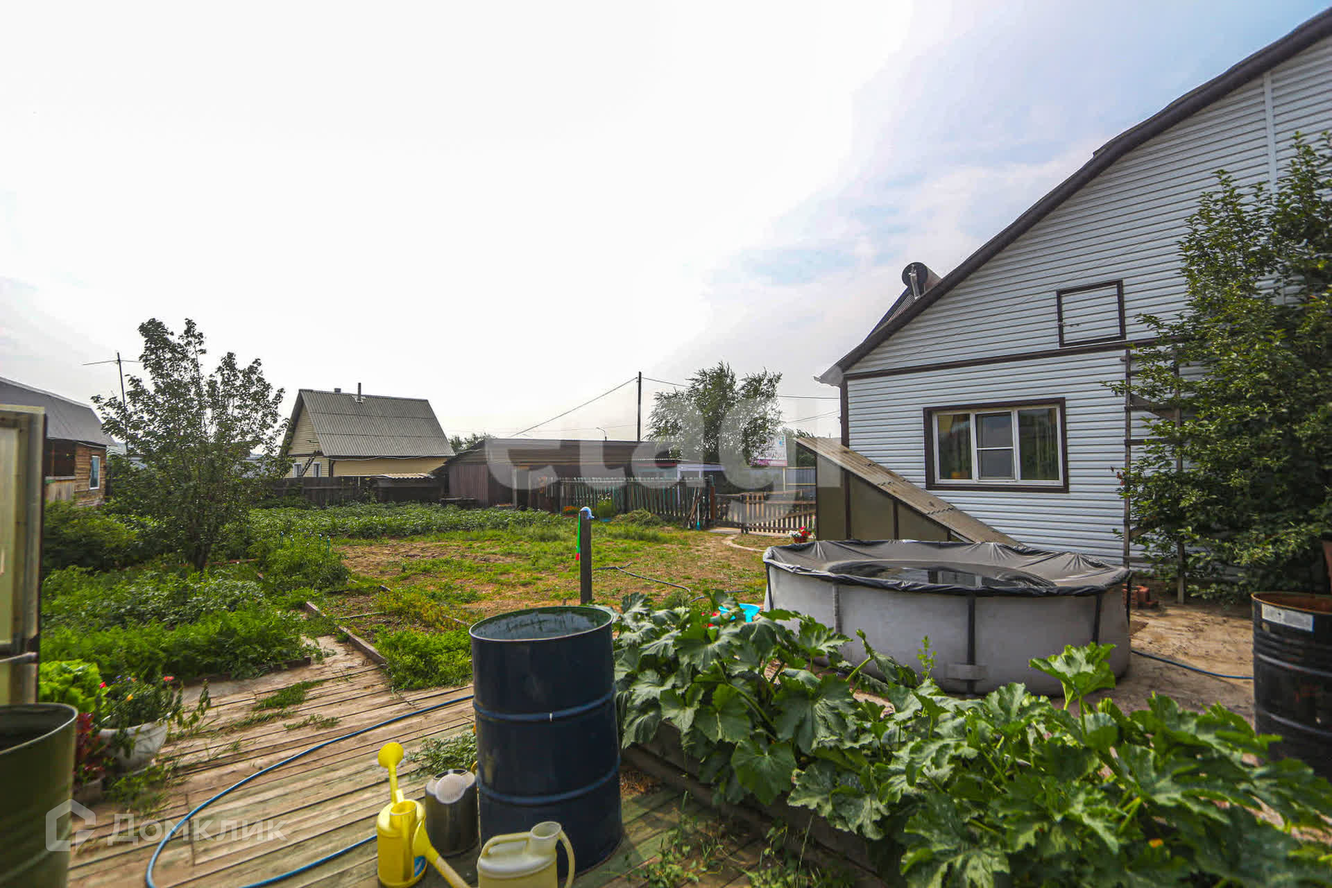 Центральное водоснабжение, отопление с котлом на твердом топливе (уголь, дрова) и электрическое, а также установлена солнечная батарея. Участок ровный площадью 12,05 соток с двумя теплицами, грядками и парниками. Насаждения включают жимолость, грушу, малину, яблоню, землянику, смородину, иргу, облепиху, сирень, вишню, и есть место для посадки картофеля.