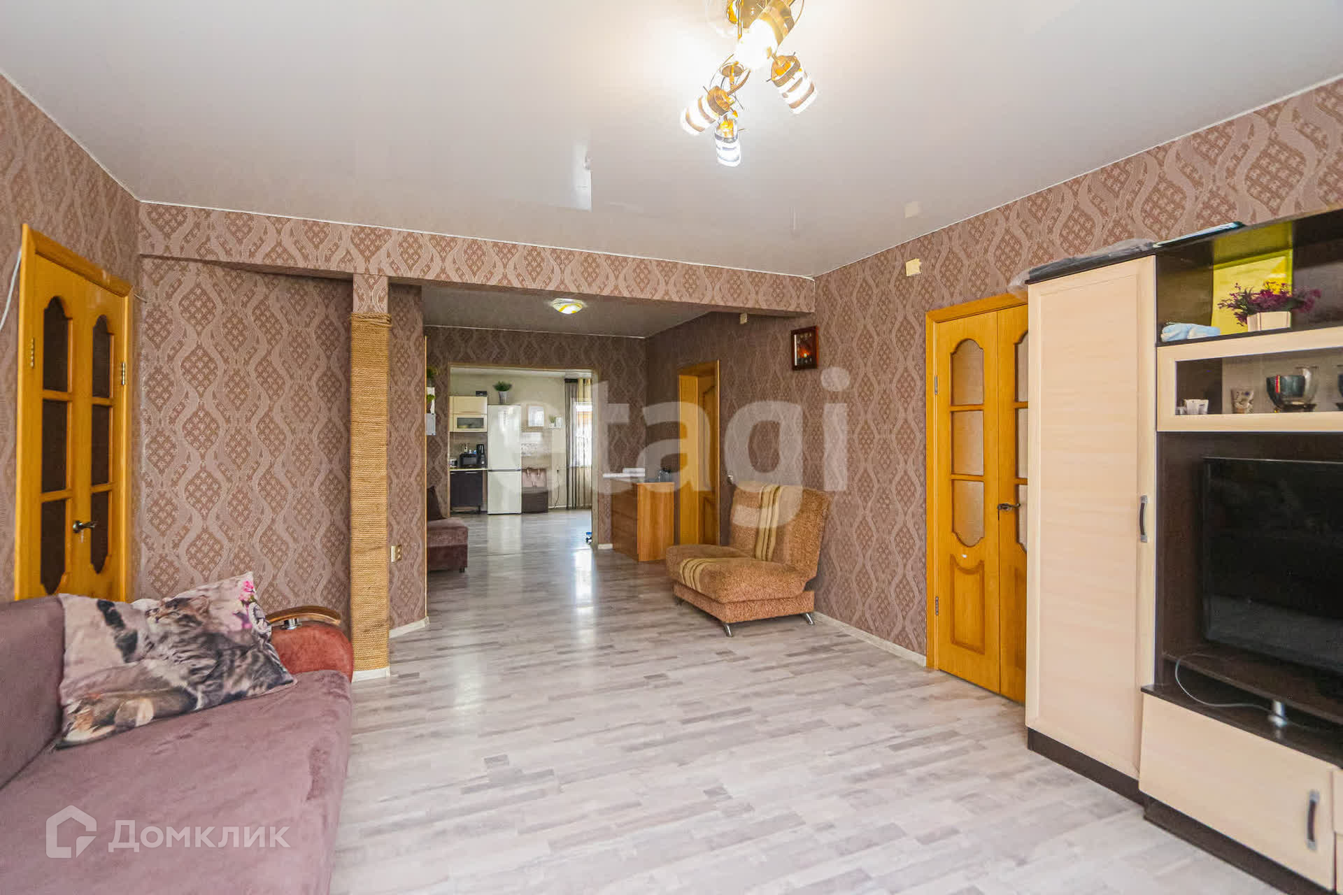 Продается благоустроенный и просторный дом в ДНТ Багульник (с. Нижний Саянтуй), построенный в 2012 году. Дом оформлен с современным ремонтом и включает светлую кухню площадью 33,2 кв.м, три уютных комнаты и большую гостиную. В ванной комнате пол выложен плиткой, стены отделаны пластиком. Также имеется помещение для хранения хозяйственных нужд и инструментов, проведен Wi-Fi (Дом.ру). Общая площадь дома составляет 124,2 кв.м.