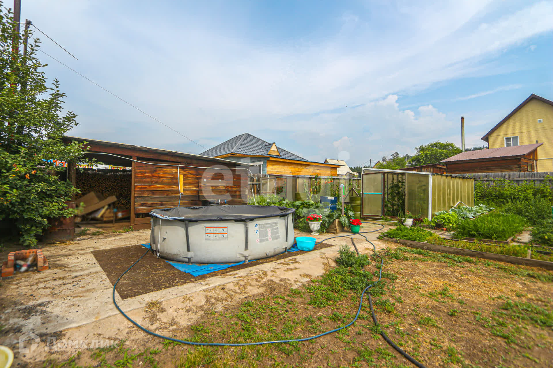 Гараж рассчитан на одну машину, с возможностью разместить две. Также имеется летняя кухня из бруса площадью 19,6 кв.м с печным отоплением и утеплением, рядом расположена баня с парилкой. На участке есть хозяйственные постройки и погреб. Вход в котельную со стороны огорода. Есть дровник и место для хранения угля.