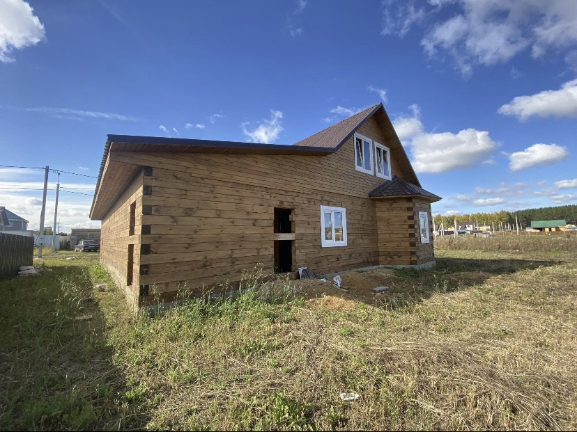 Дом построен из бруса. Второй этаж мансардный.