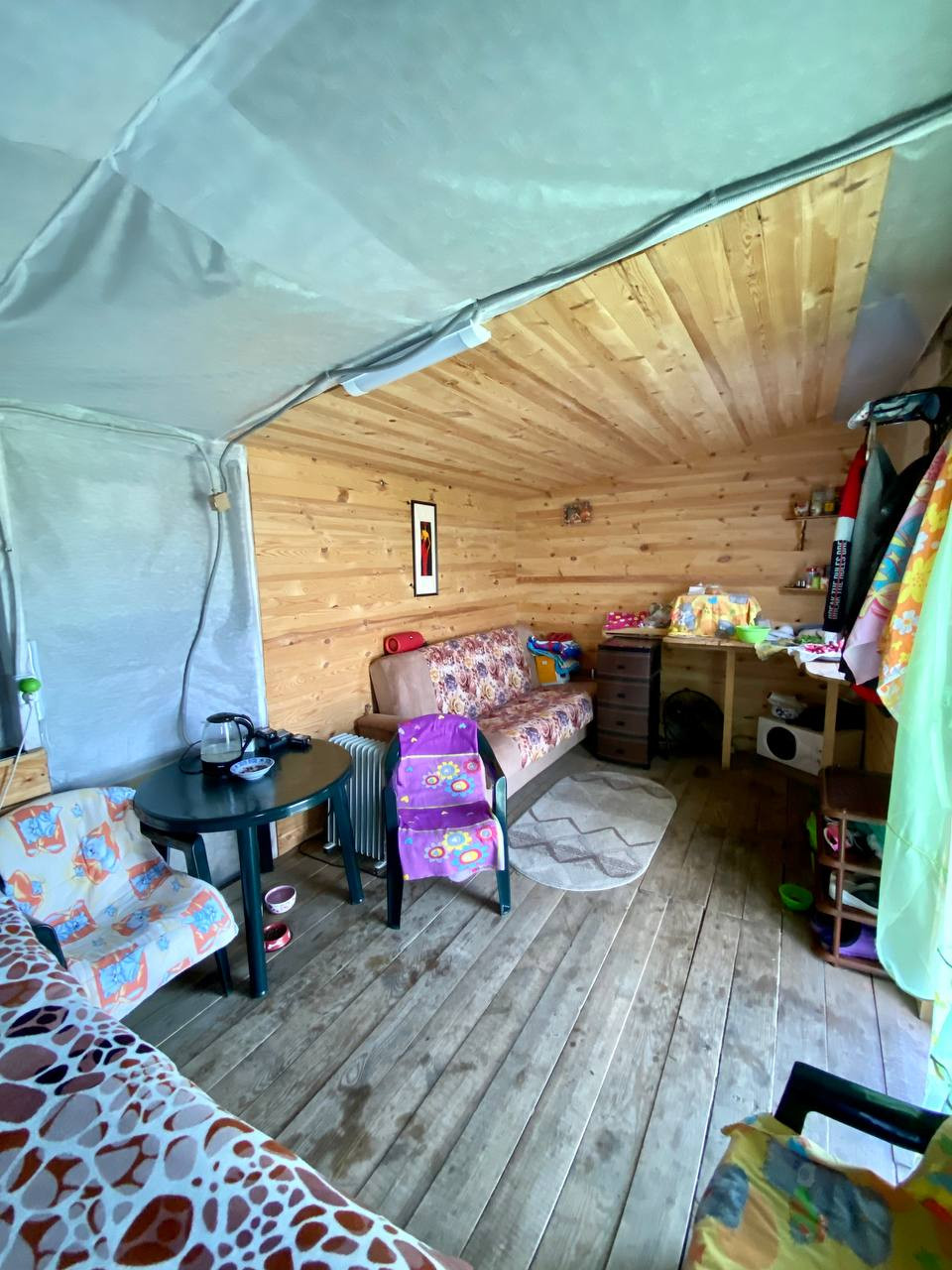 Дачный домик примерной площади 40 квадратных метров, состоящий из двух отдельных входов, первый жилая комната, второй вход склад-кладовка для хранения вещей.