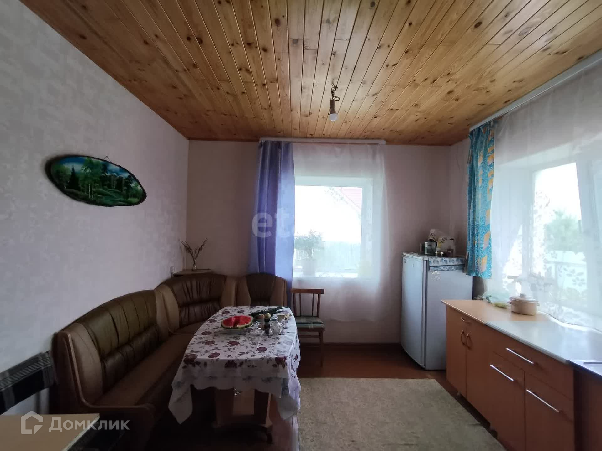 Первый этаж - зал, комната, кухня, санузел, второй этаж - свободная планировка (недострой). Сделан косметический ремонт, окна ПВХ, везде линолеум. Свет заведен в дом; вода - скважина, отопление - электро, канализация - септик. Санузел раздельный, в доме. Остается вся мебель и бытовая техника.