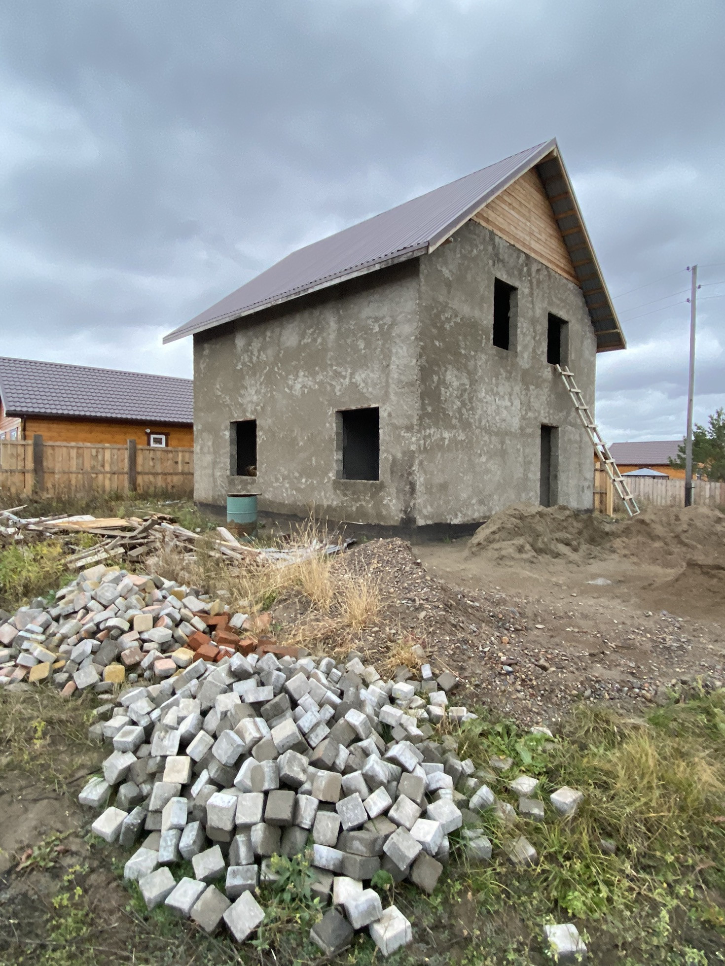 Дом из блоков. Кухня , зал , 4 спальни по проекту . Электричество подключено. Своя скважина.Подойдет под круглогодичное проживание.