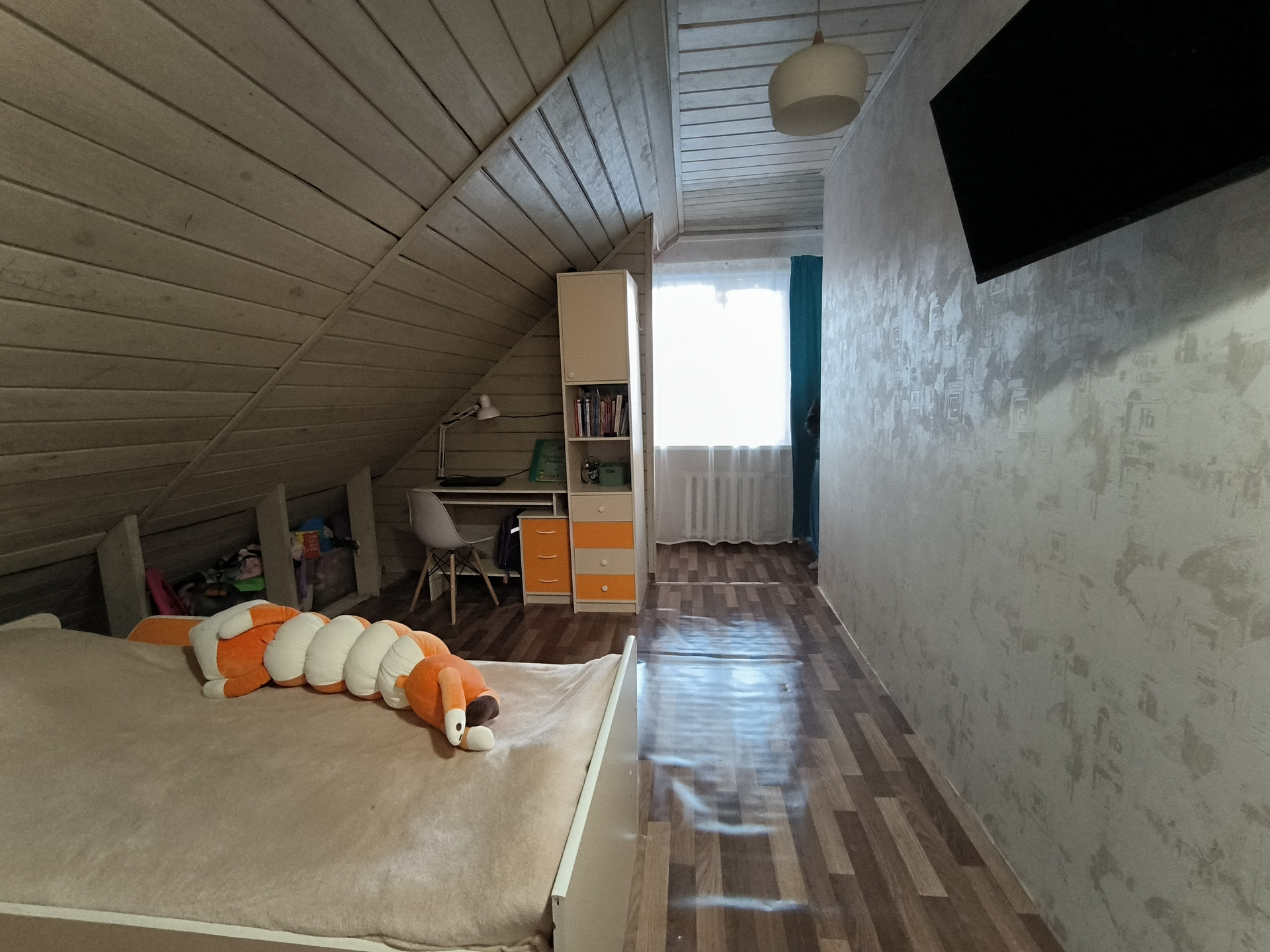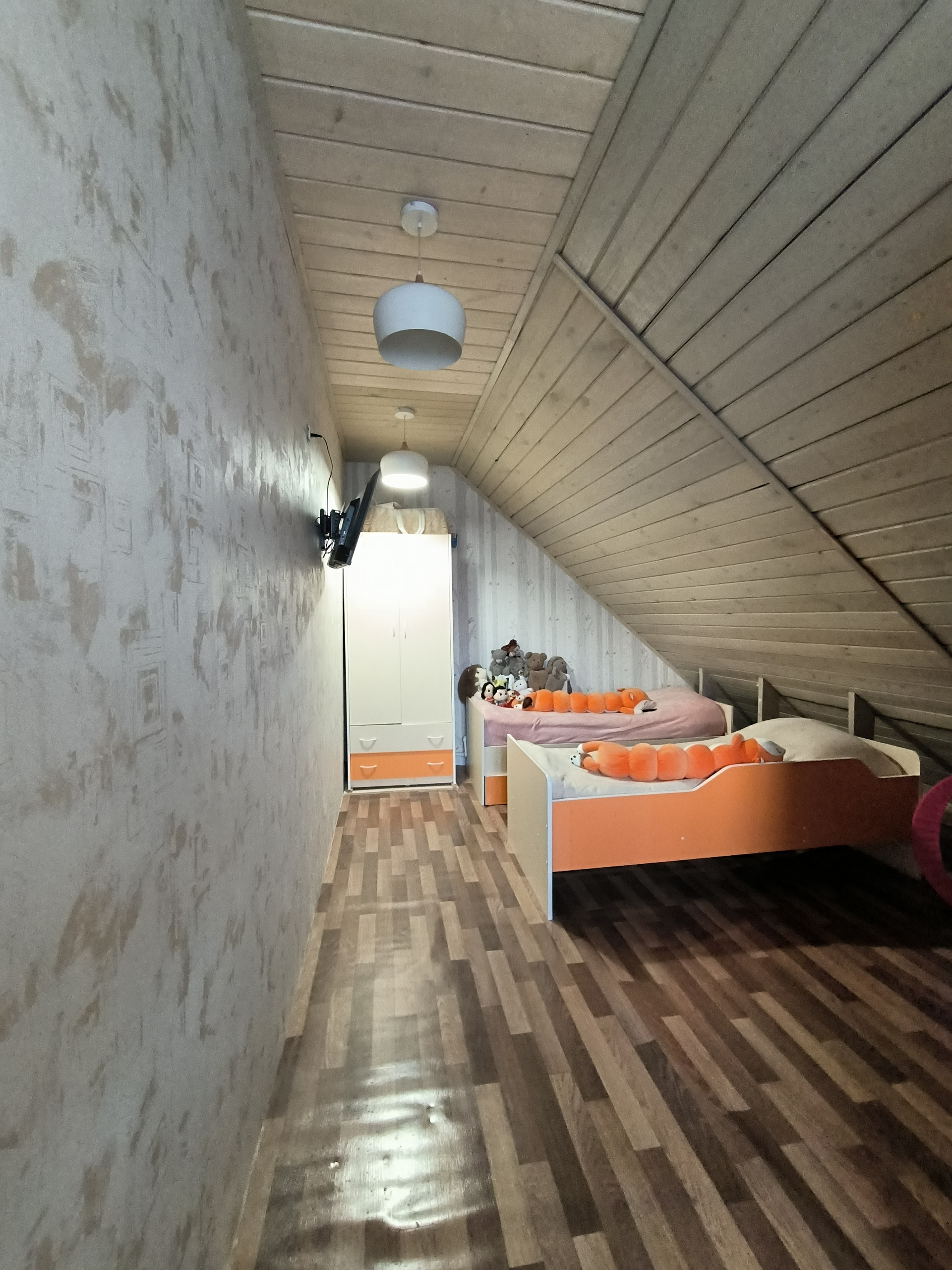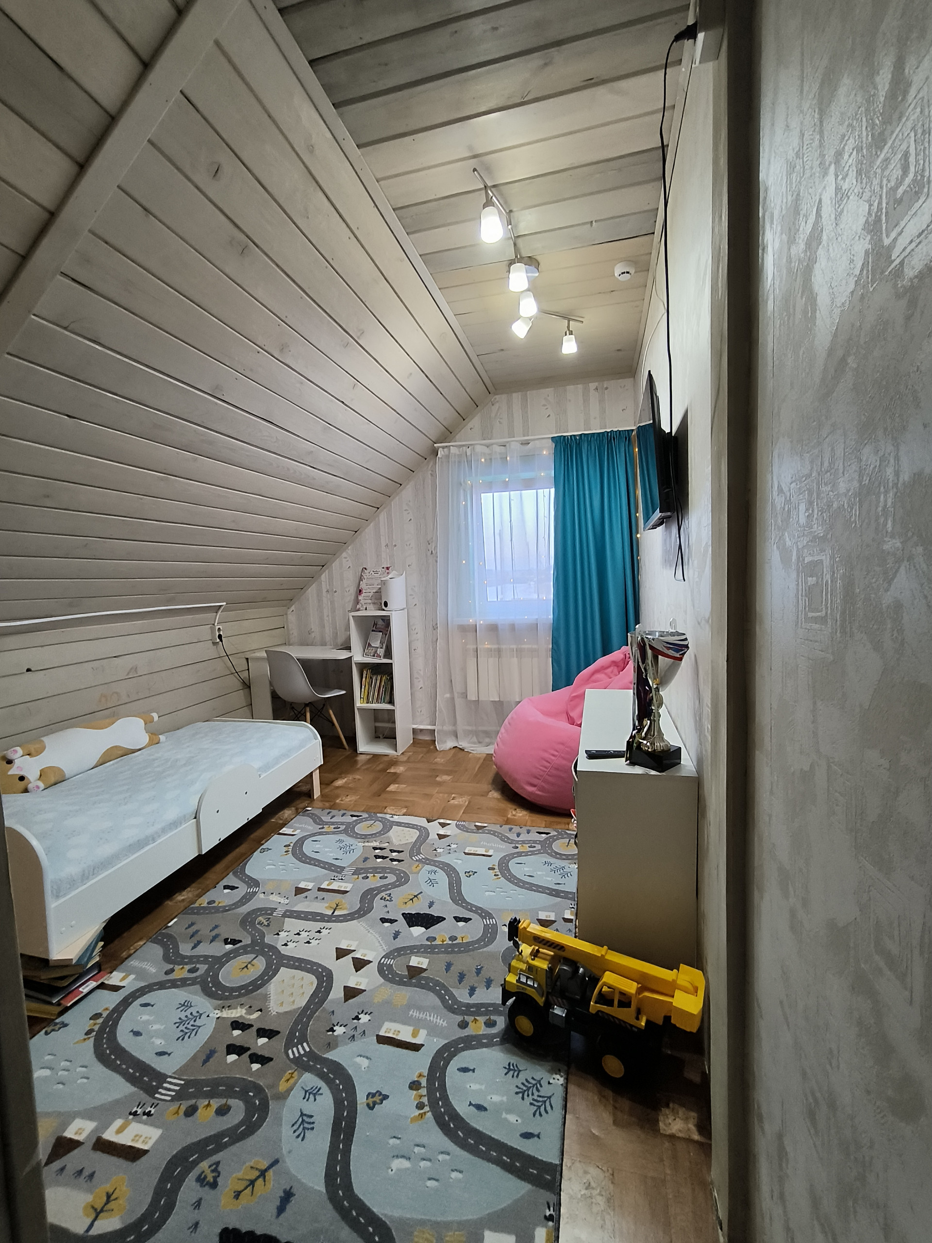 На втором этаже детская, спальня. Весь интерьер в светлых тонах.