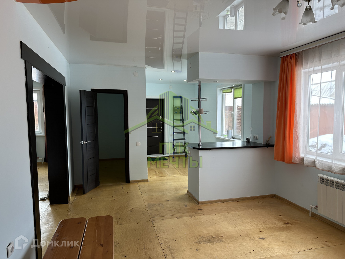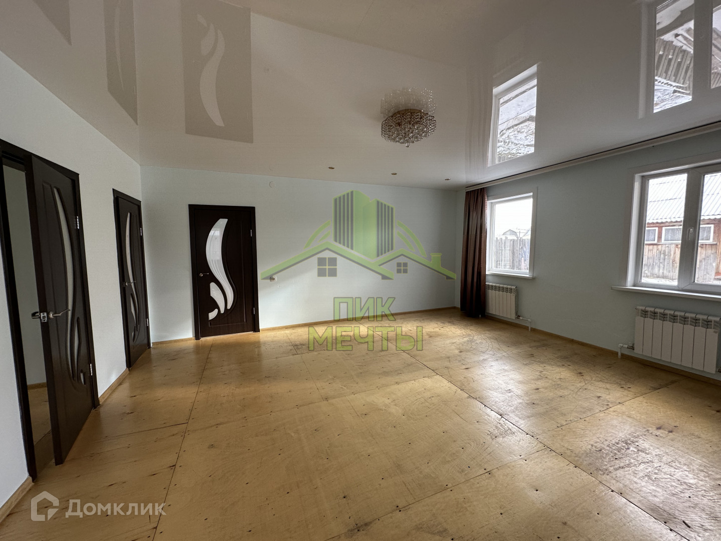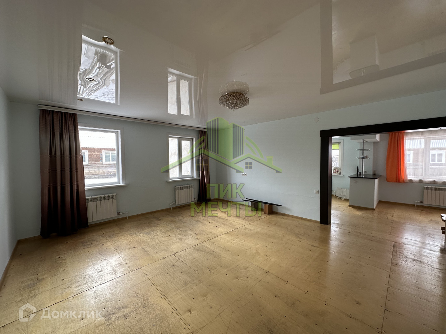 В доме высокие натяжные потолки, стеклопакеты, стены ровные оштукатуренные, новые радиаторы отопления.