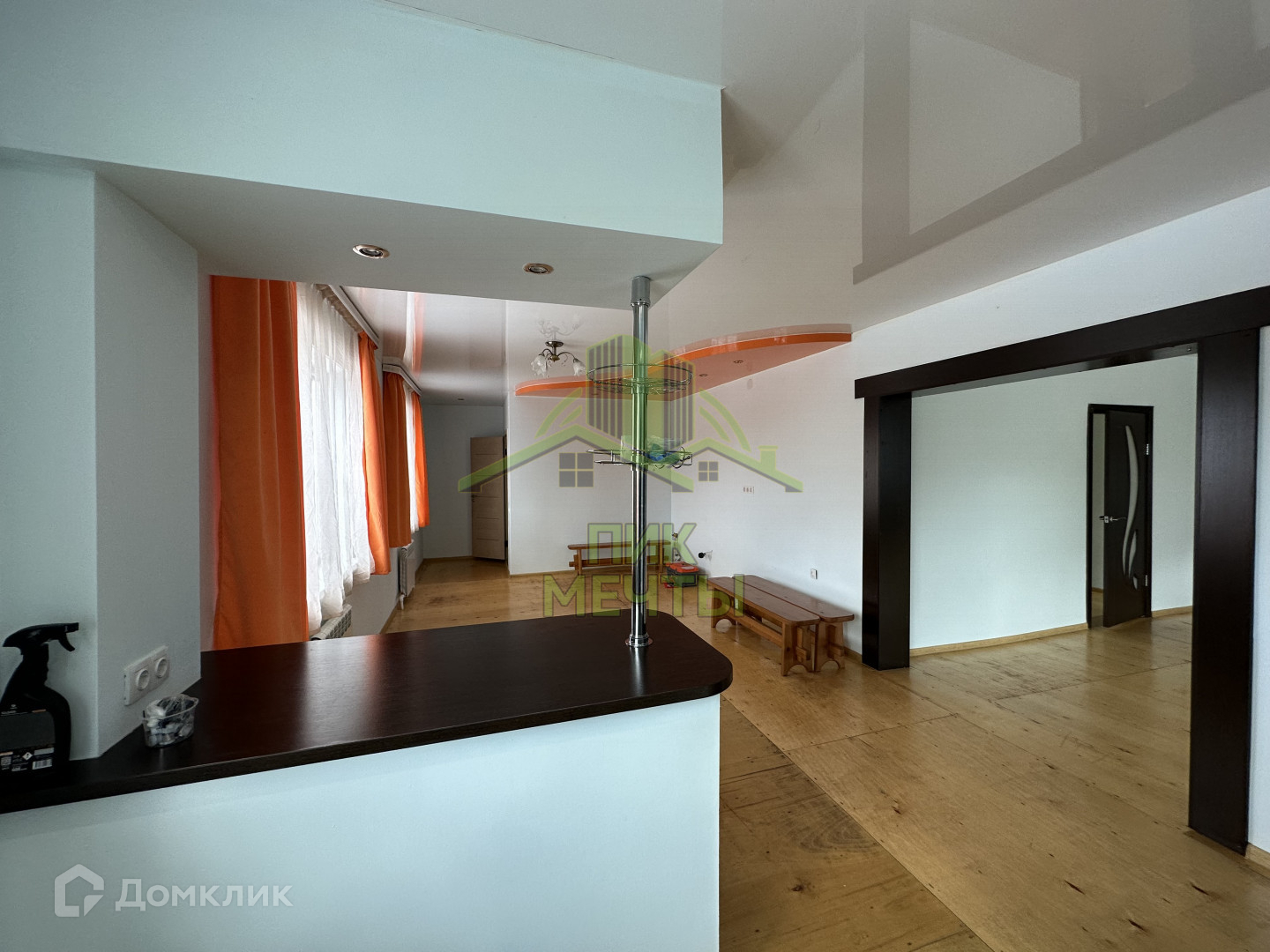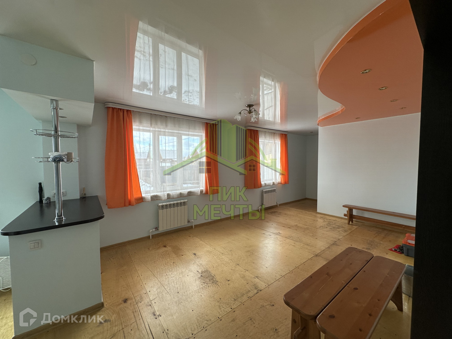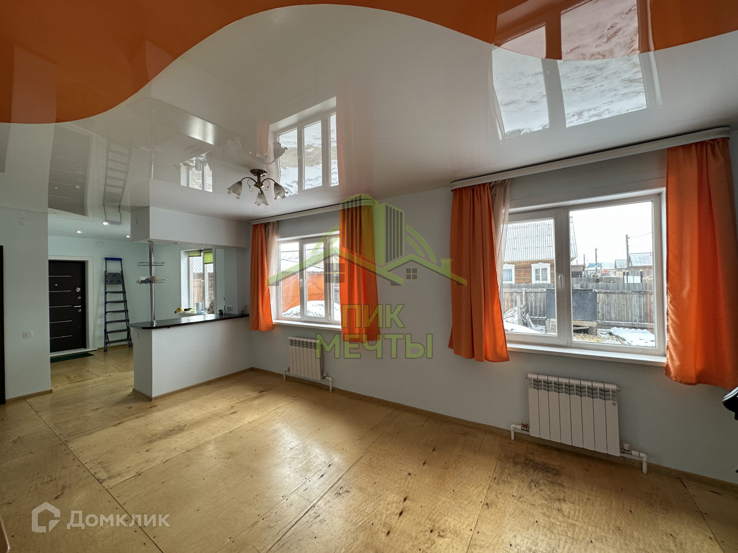 В доме высокие натяжные потолки, стеклопакеты, стены ровные оштукатуренные, новые радиаторы отопления.