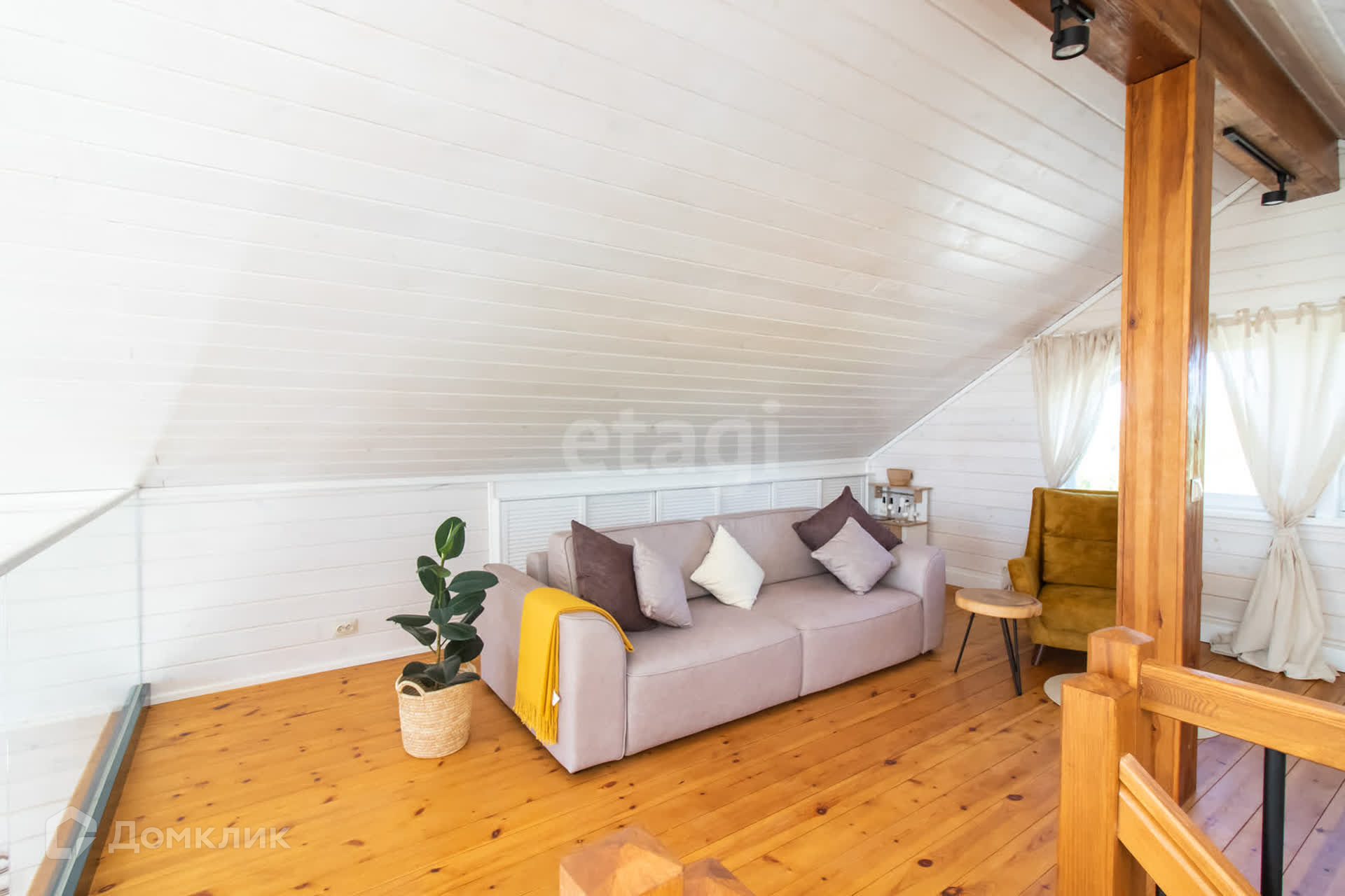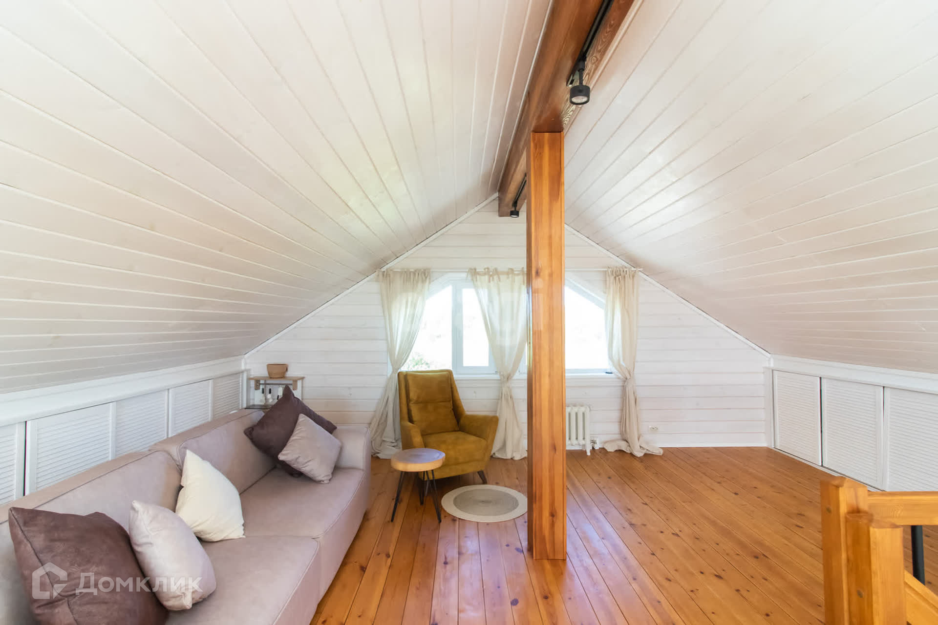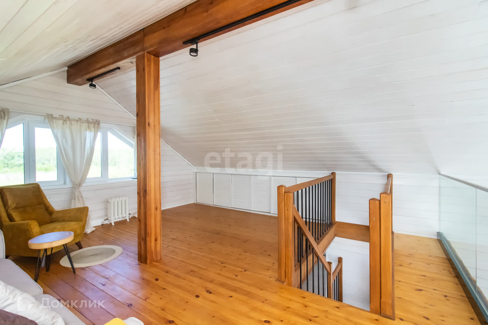 На первом этаже шикарная кухня-гостиная с панорамными окнами, детская комната, совмещенный санузел, котельная. Второй этаж просторная комната с видом на озеро и живописные закаты.