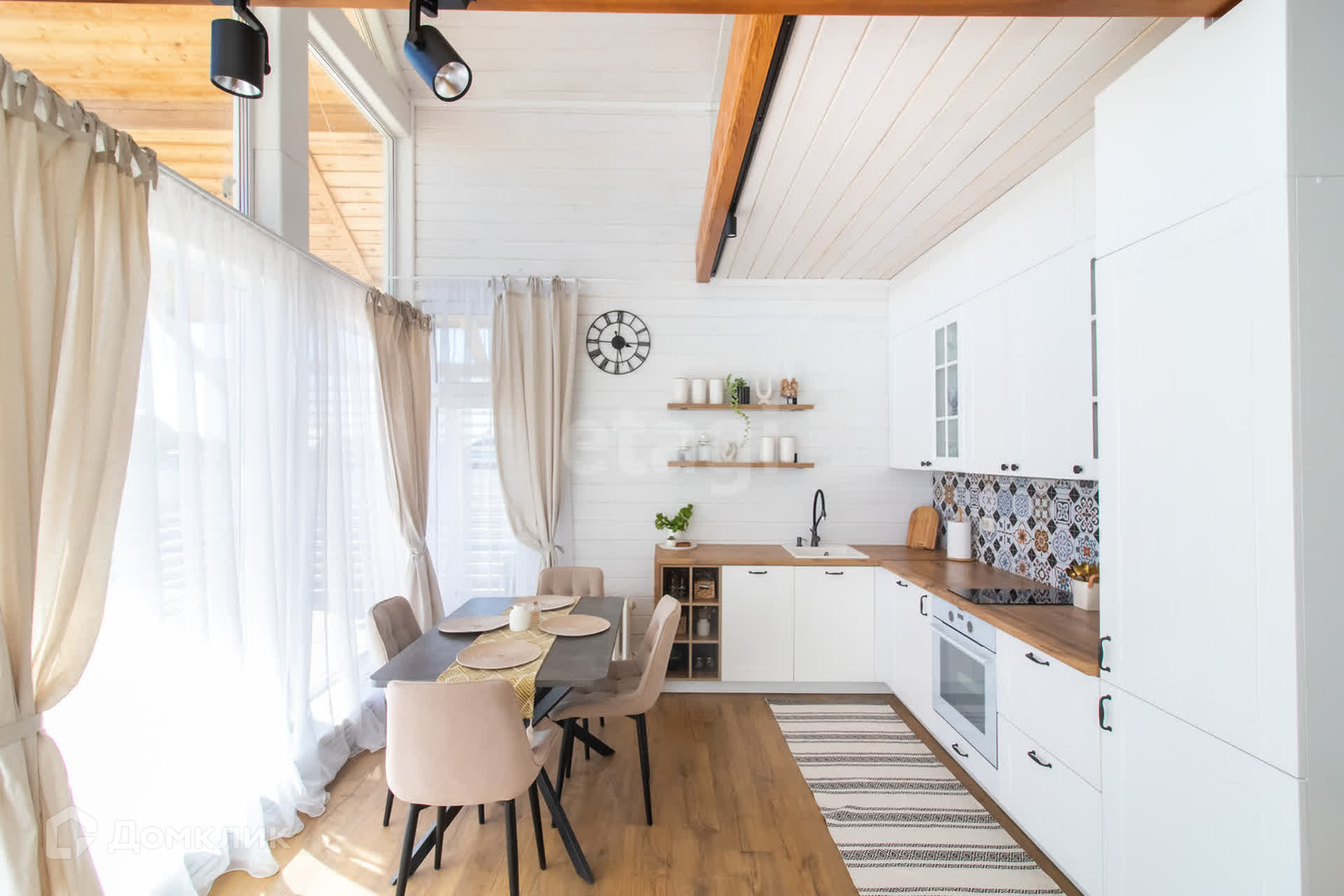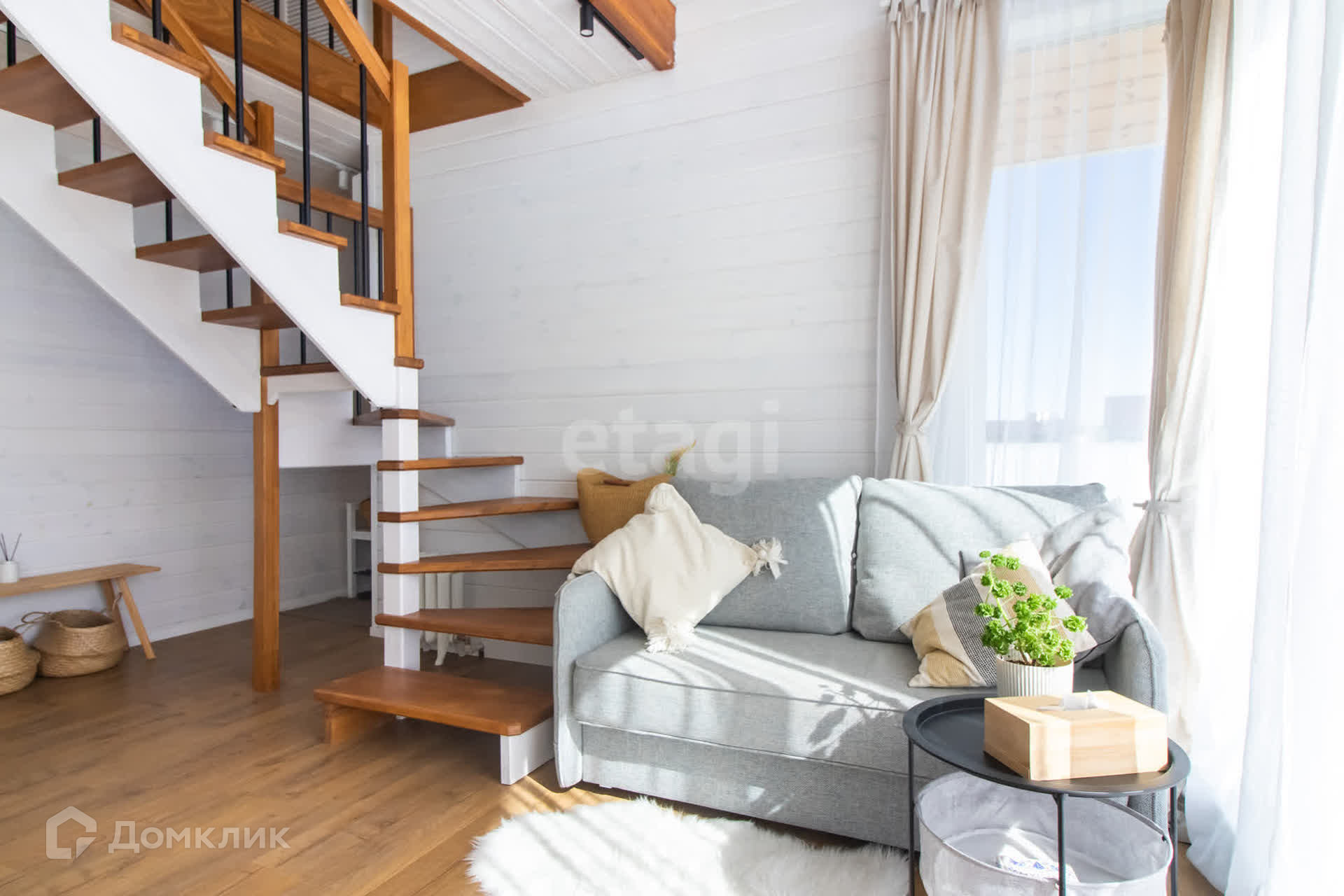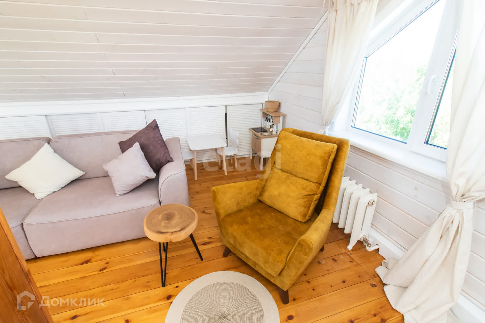На первом этаже шикарная кухня-гостиная с панорамными окнами, детская комната, совмещенный санузел, котельная. Второй этаж просторная комната с видом на озеро и живописные закаты.