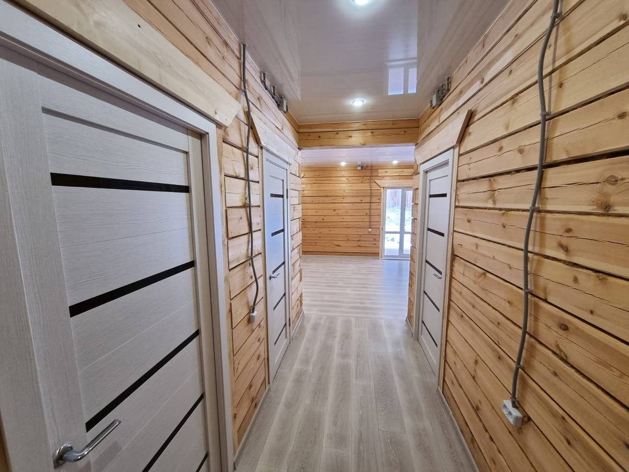 Дом построен из качественного бруса 18*18. Подготовлены все коммуникации для комфортной жизни. Отопление - тёплый водяной пол с котлом ZOTA, управляемый удобно с пульта, Вода - собственная скважина, либо подключение к центральной воде, если это возможно, Канализация - септик 6 кубов. Электричество разведено по всему дому, розетки, выключатели в каждой комнате. Внутренняя отделка: натяжные потолки с точечным освещением, кафель и сантехника в санузле, линолеум под плинтус в комнатах, межкомнатные двери. Осталось только завести мебель! На фото представлен готовый вариант с чистовой отделкой.