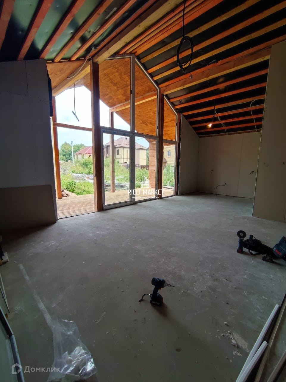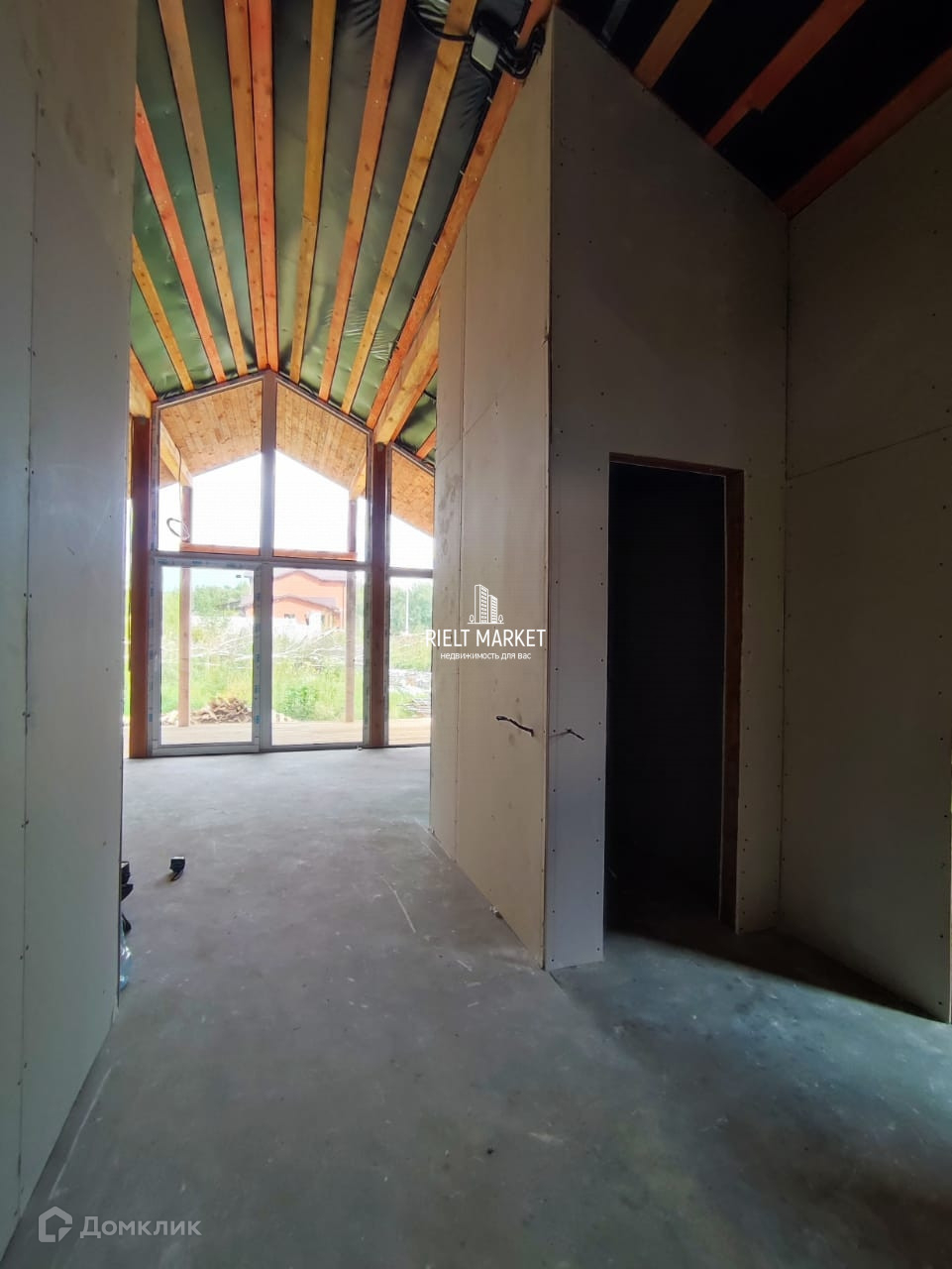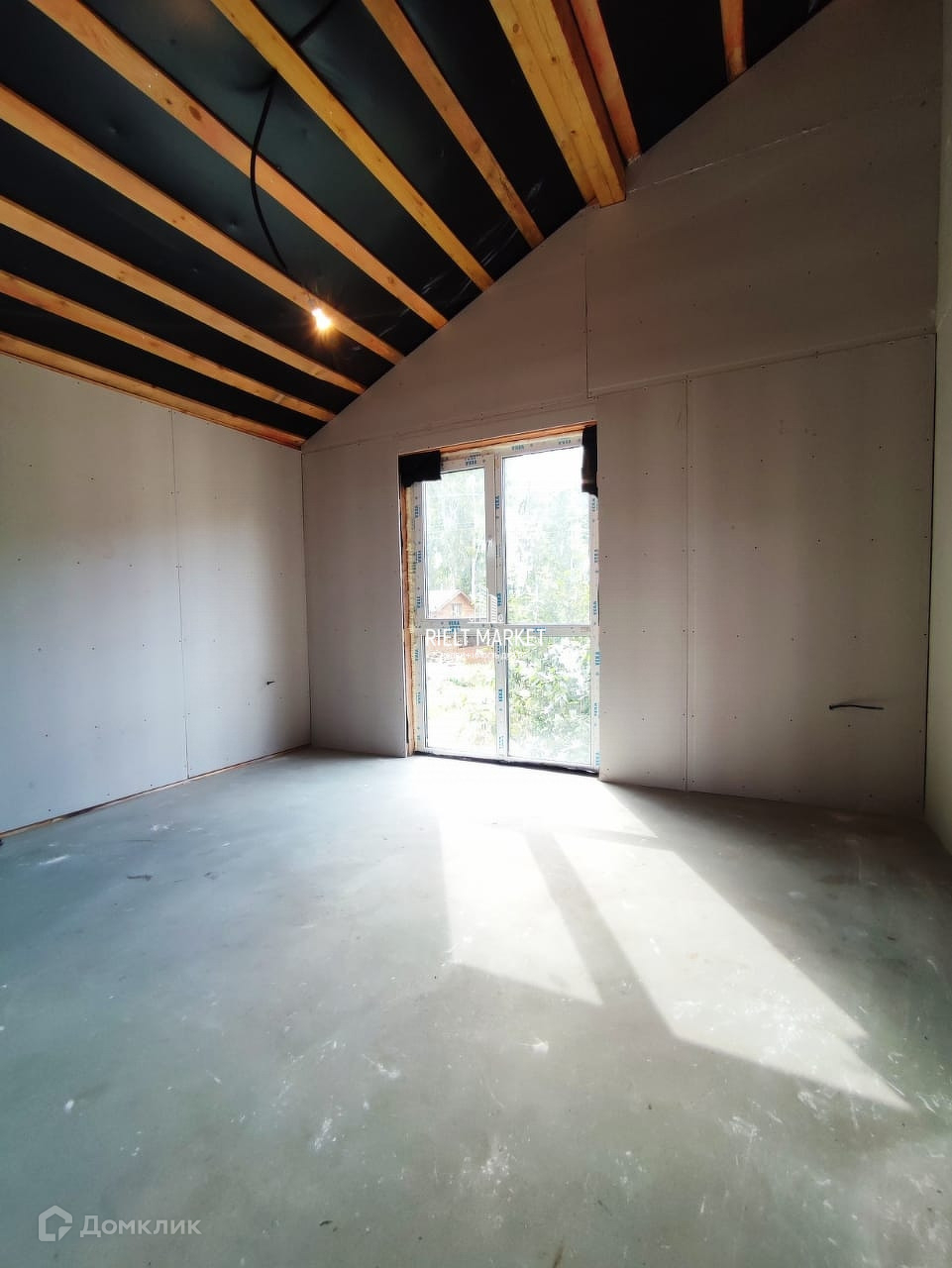 Высокие потолки под крышу.