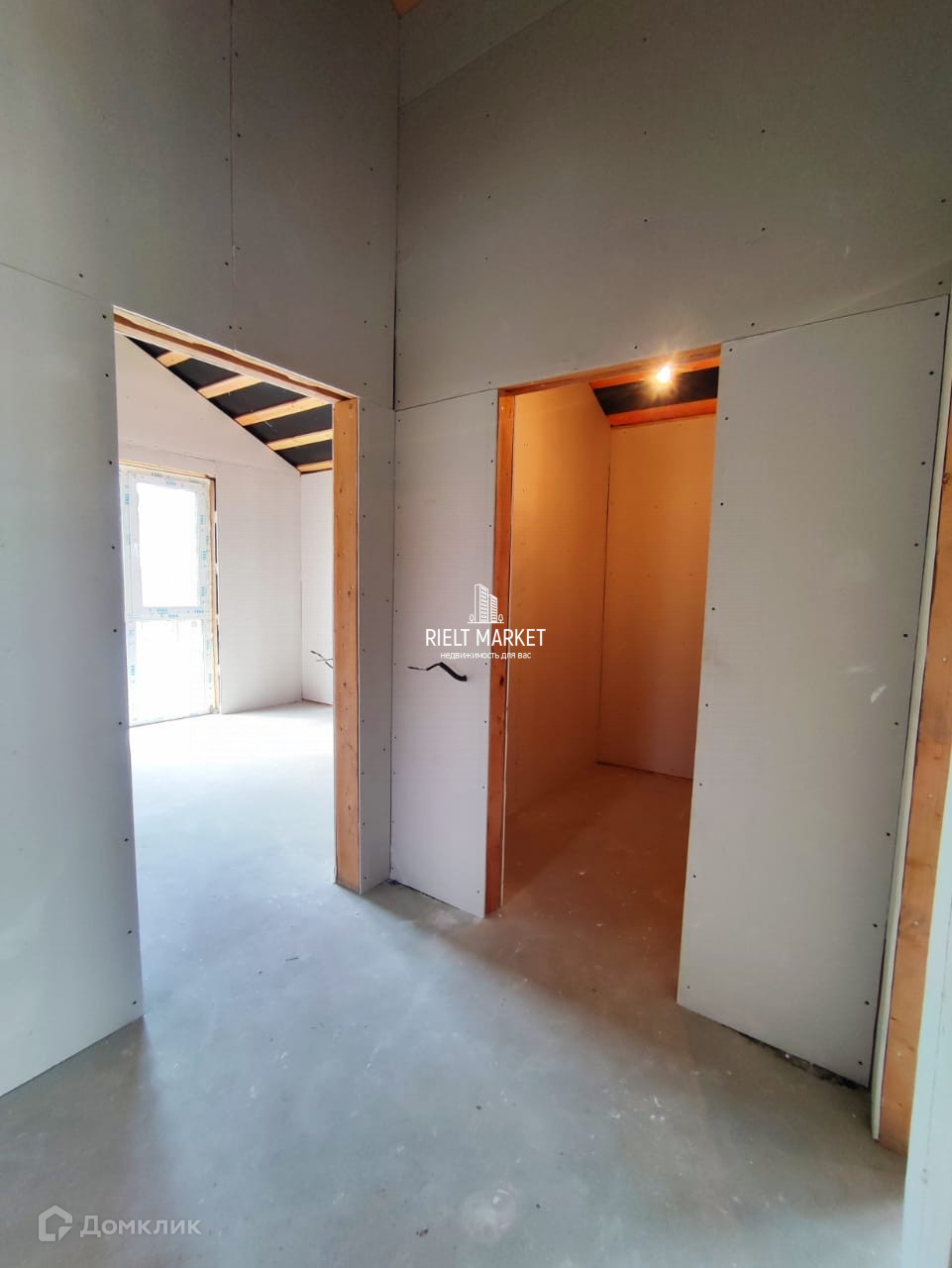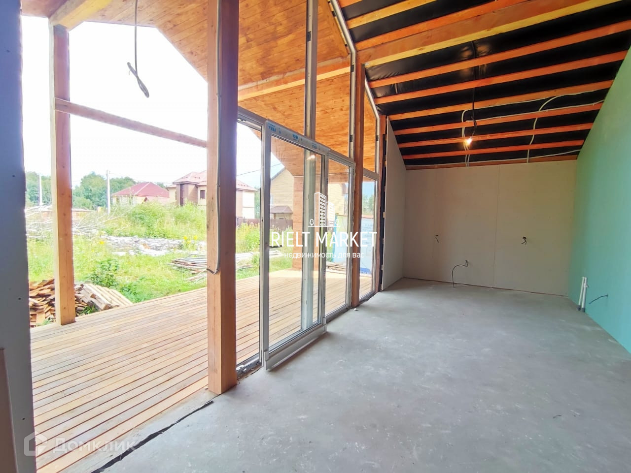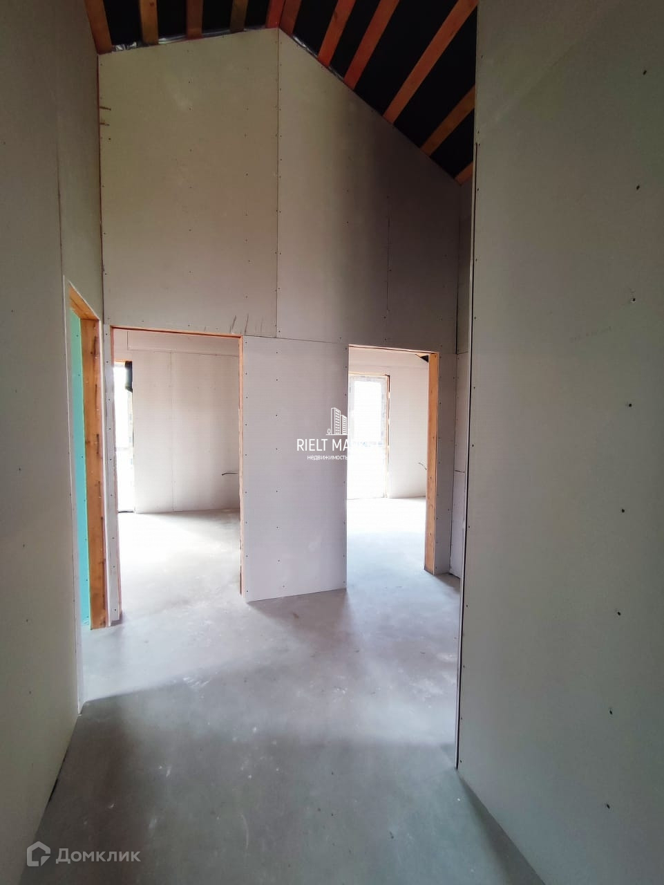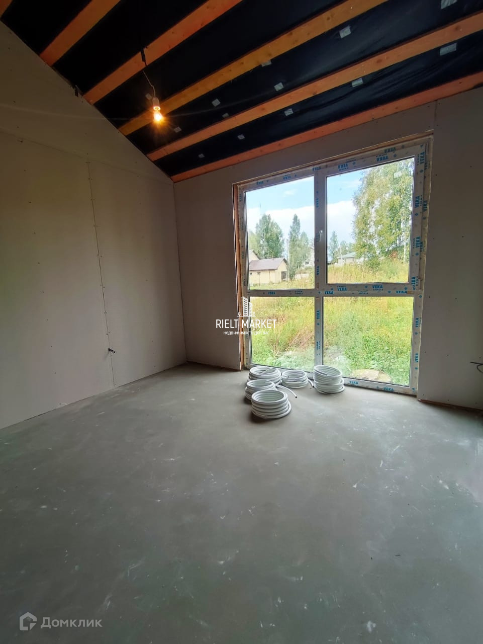 Высокие потолки под крышу.