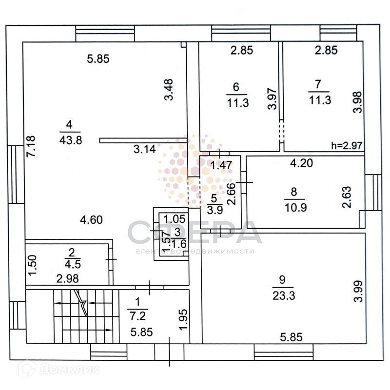 Первый и второй этажи дома жилые, третий этаж под чистовую отделку: на полу стяжка, стены оштукатурены.