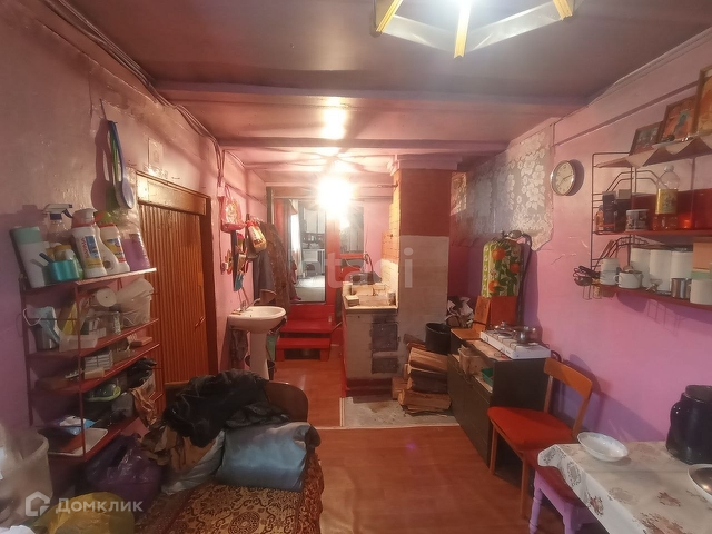 Площадь дома составляет 120 кв. м. Дом тёплый, просторный, имеется три комнаты. Дом полностью благоустроенный, имеется 3 мойки, ванная, унитаз, установлен водонагреватель. Отопление проведено от печки, также есть электрокотел. Дополнительно установлена вторая печь. Пользуются редко.