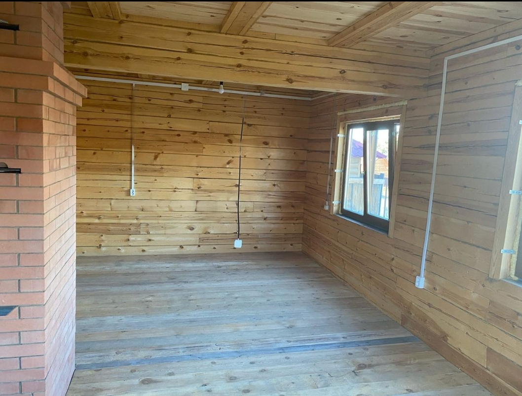 Продаётся дом из бруса, 2016 г. постройки, внутри стругано, кроме пола, Печное отопление, освещение проведено, выгребная яма 3 кольца на 1.5 м с горловиной и дном, по дому проведена канализация, пятикамерные кашированные окна фирмы VEKA, входная дверь фирмы BERSERKER двойным терморазрывом, залито подполье на 3.2 м3, дом практически готов. Участок ровный, 8 соток. Возможность продажи в ипотеку.