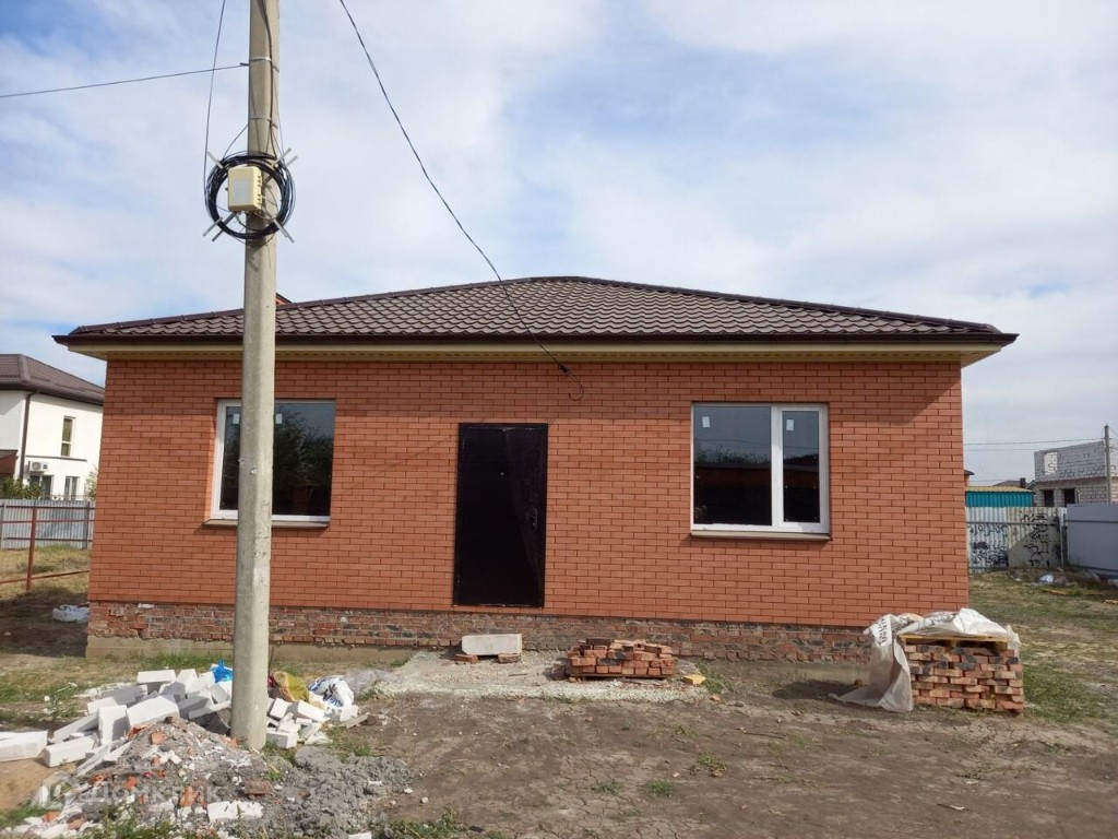 дом в черновой отделке, торг Количество комнат: 4,Площадь дома: 85 м,Площадь участка: 6 сот.,Этажей в доме: 1,Категория земель: Индивидуальное жилищное строительство (ИЖС),Год постройки: 2024,Материал стен: Кирпич,Санузел: В доме,Ремонт: Требуется,Электричество: есть,Газ: по границе участка,Отопление: газовое,Водоснабжение: скважина,Канализация: септик,Парковка: Парковочное место,Транспортная доступность: Остановка общественного транспорта,Инфраструктура: Магазин, Аптека, Детский сад, Школа,Способ продажи: Возможна ипотека,Расстояние до центра города: 3 км