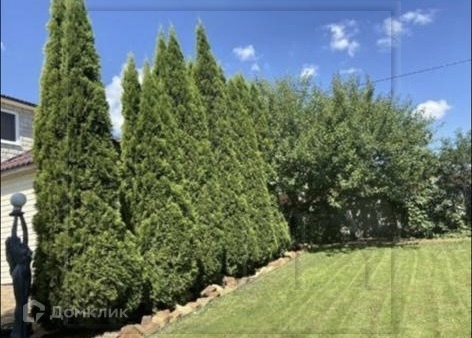 Земельный участок 10 соток, правильной прямоугольной формы. На территории земельного участка выполнен ландшафтный дизайн, постелен газон с системой автоматического полива, выложена тротуарная плитка. На участке так же расположена крытая тёплая беседка 25 м2, неотапливаемый гараж 9м х 4м (36 м2), сухой подвал 3м х 2м (6 м2). Фасадный забор имеет ворота с автоматической системой.