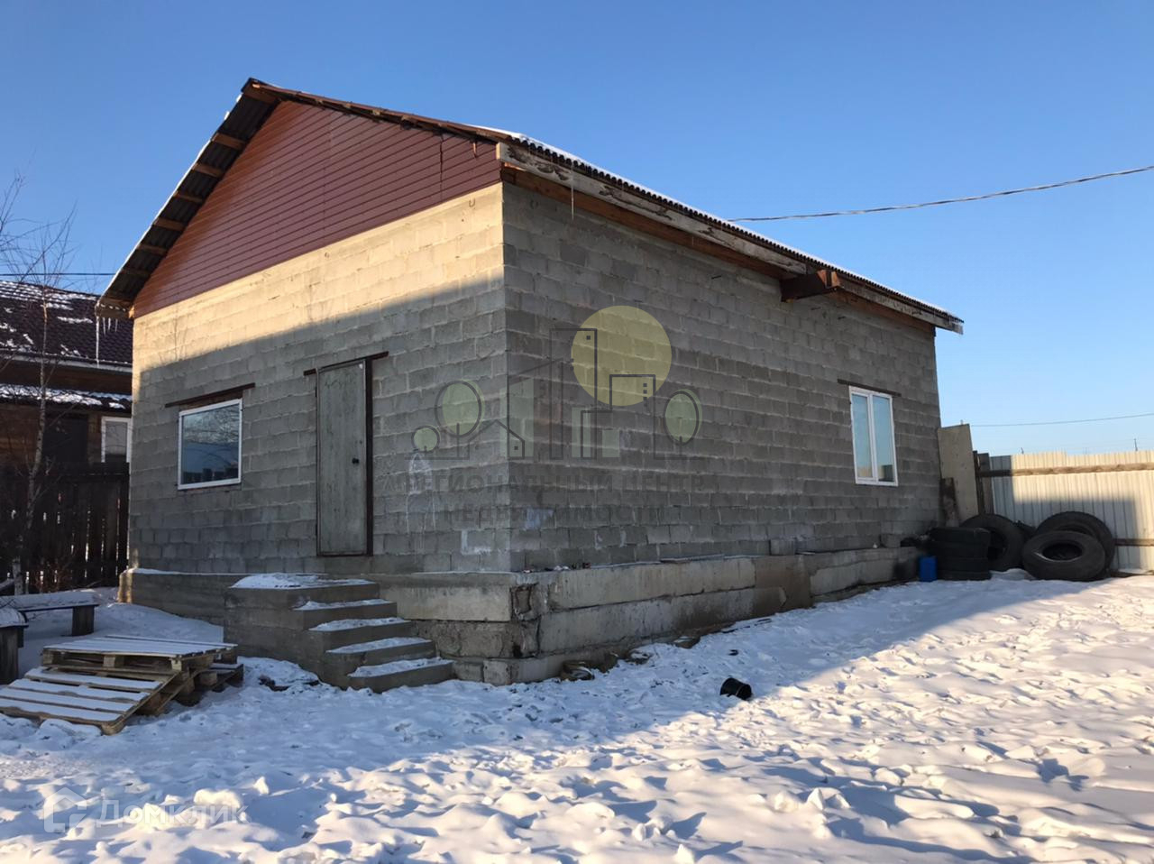 Гараж 10 на 7 метров из пескоблока, с автоматическими воротами высотой 3,4 м и шириной 4 м, бетонный пол 25 см толщиной. В гараже одновременно стоял самосвал 25 тонн и грузовой фургон, либо вмещалось 4 легковых авто. Отличный бокс под любые виды работ.