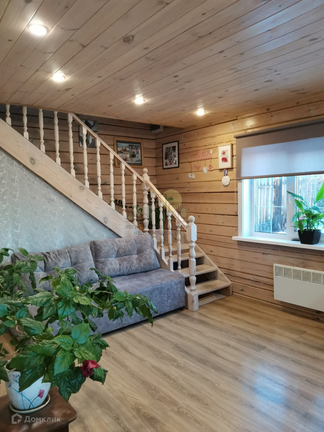 Дом постройки 2018 года из бруса редкого сечения 20х15. Площадь первого этажа 36м2, второй мансарда 36м2, балкон 12м2, веранда 12м2. Утеплены полы, крыша, северная сторона. На полу первого этажа ламинат, на втором ковролин, потолок на первом этаже отделан вагонкой. Стены окрашены как внутри дома, так и снаружи. Установлена банная печь с камином и выделено место под парилку.
