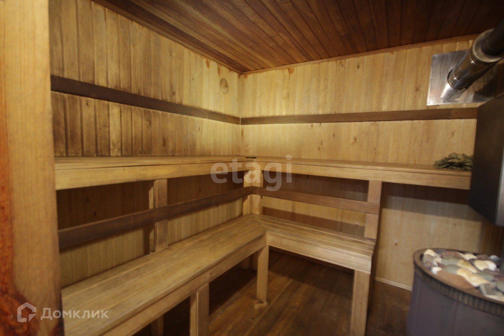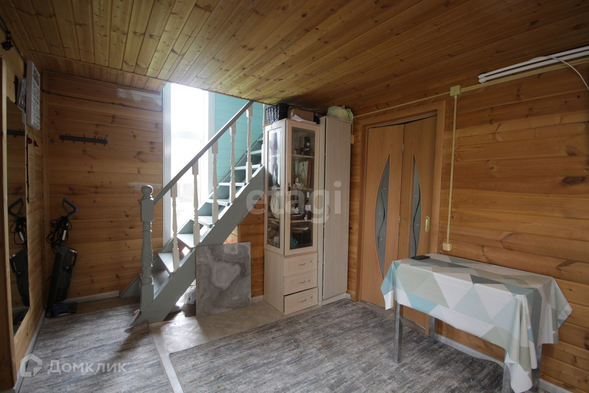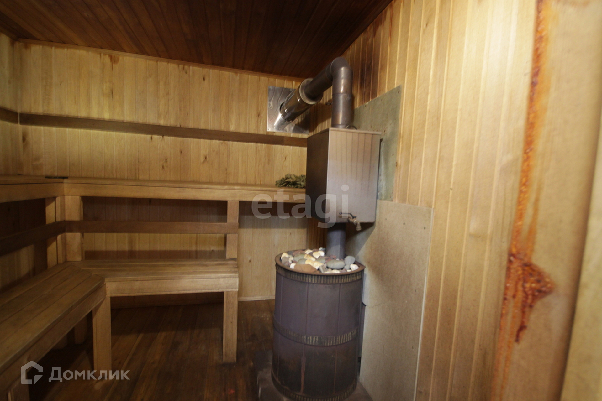 На первом этаже в доме расположена кухня-гостиная, ванная комната, парилка, а на втором этаже просторная комната.