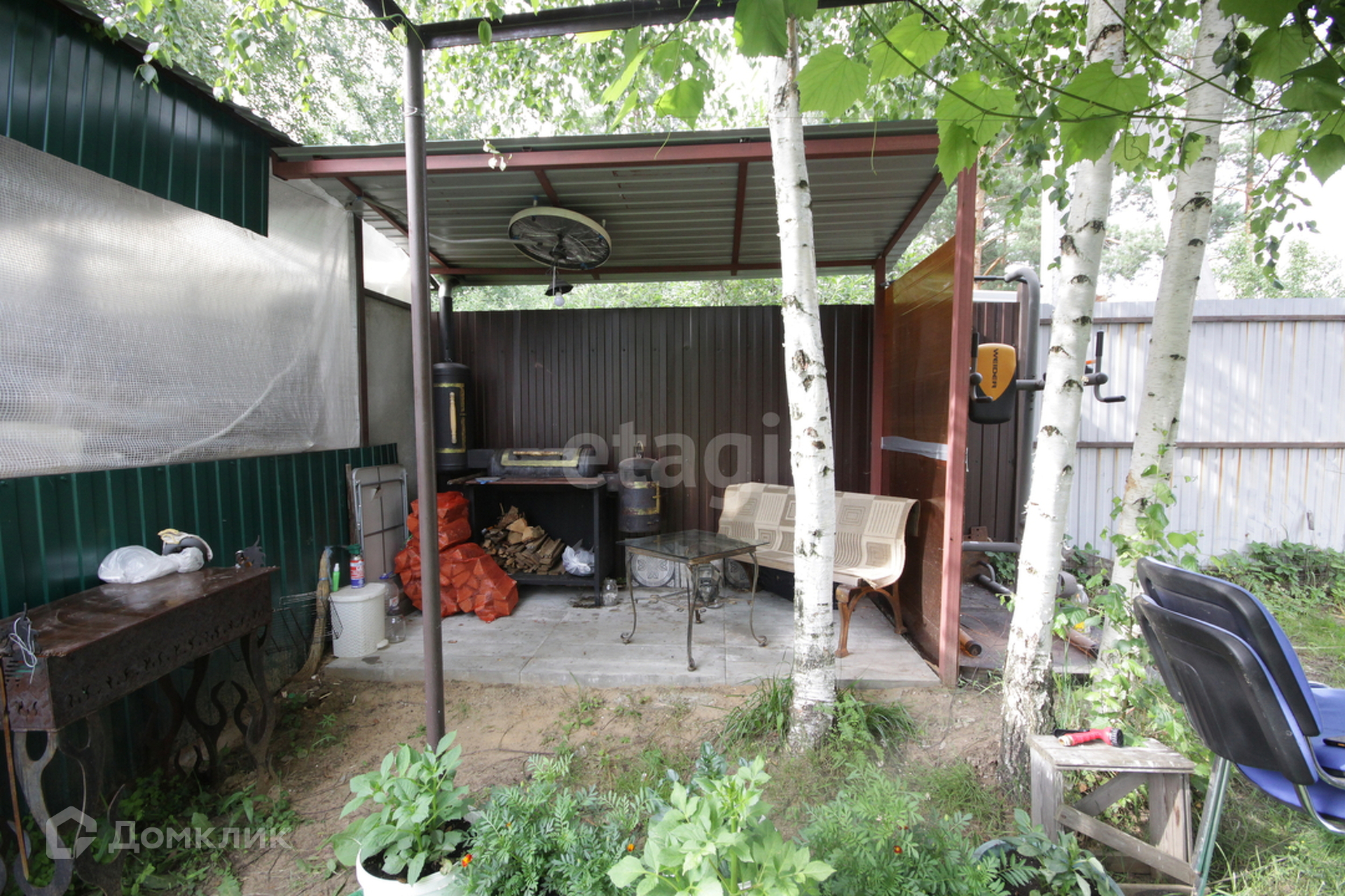 Есть беседка, мангальная зона, сарай.