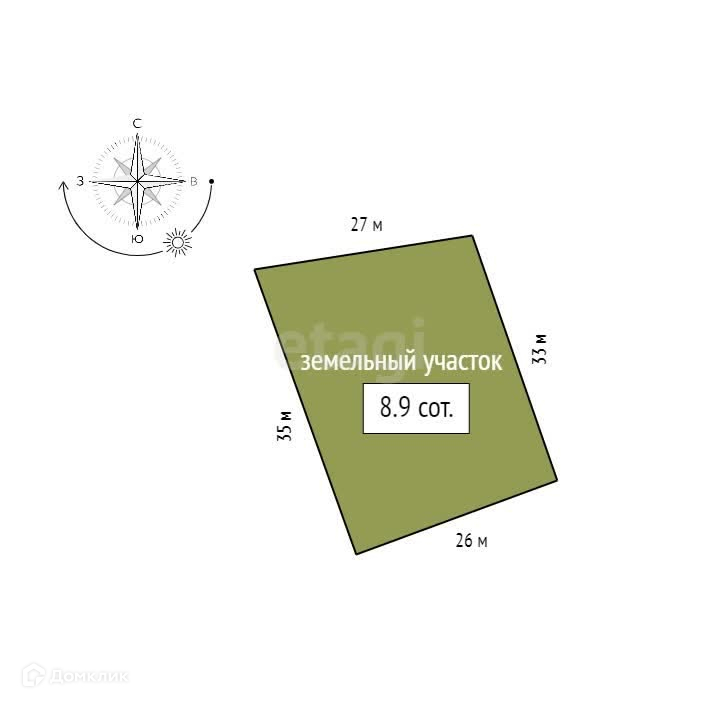 Площадь участка 8.9 сот.