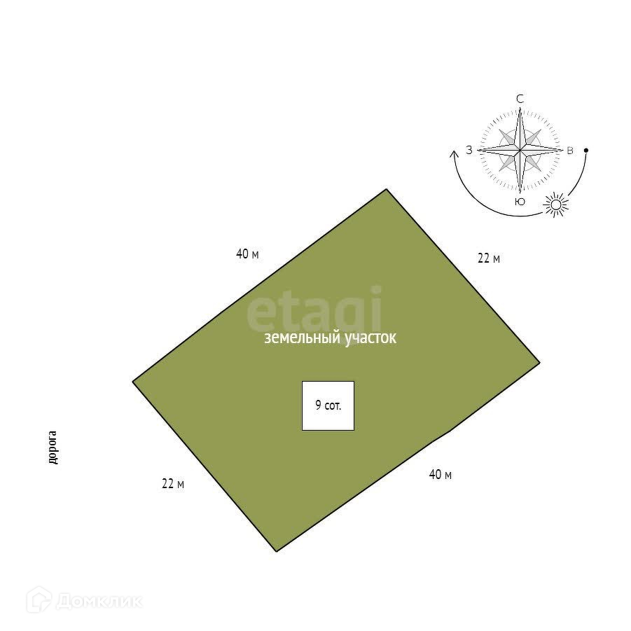 Площадь участка 9 сот.