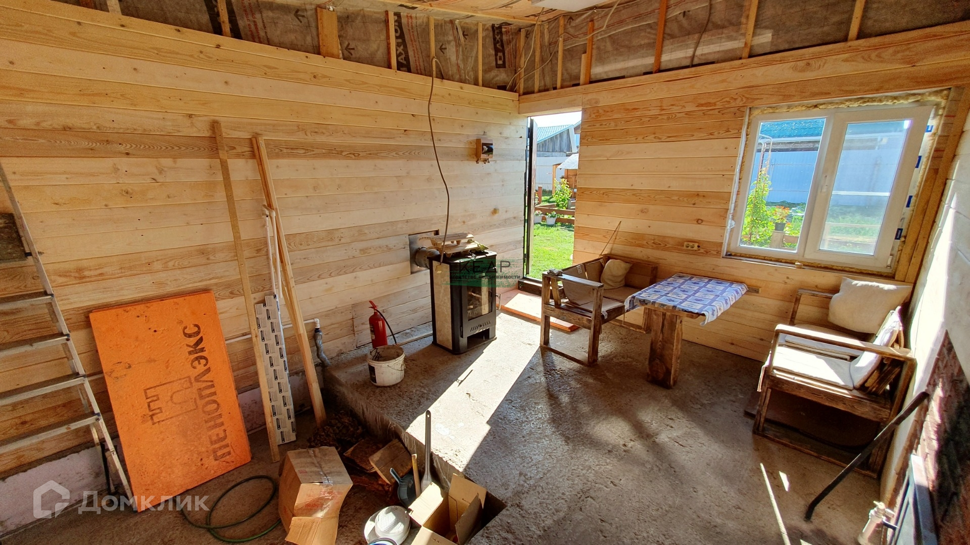 На заднем дворе расположена брусовая баня (6*5). Комната отдыха в процессе обустройства, моечная и парная полностью готовы. Установлены теплые полы. Бойлер на 80 л.