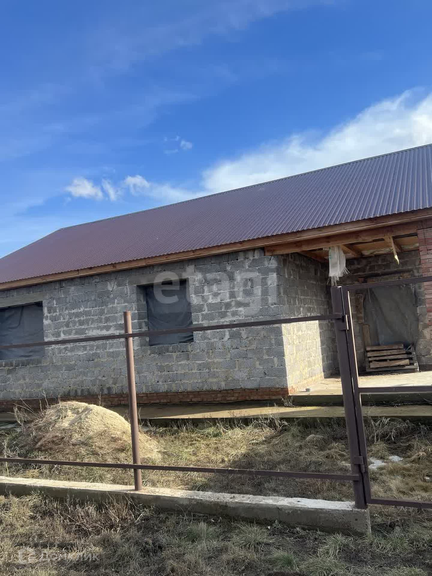 Земельный участок ровной формы 10 соток,дом общей площадью 100 кв.м . Фундамент и стены дома возведены в 2021 году. Материал стен керамзитоблок, крыша метало черепица, есть своя скважина 21 м, трубы водоснабжения и водоотведения заведены в дом, смонтирован септик ( 3 кольца по 1,5 м.