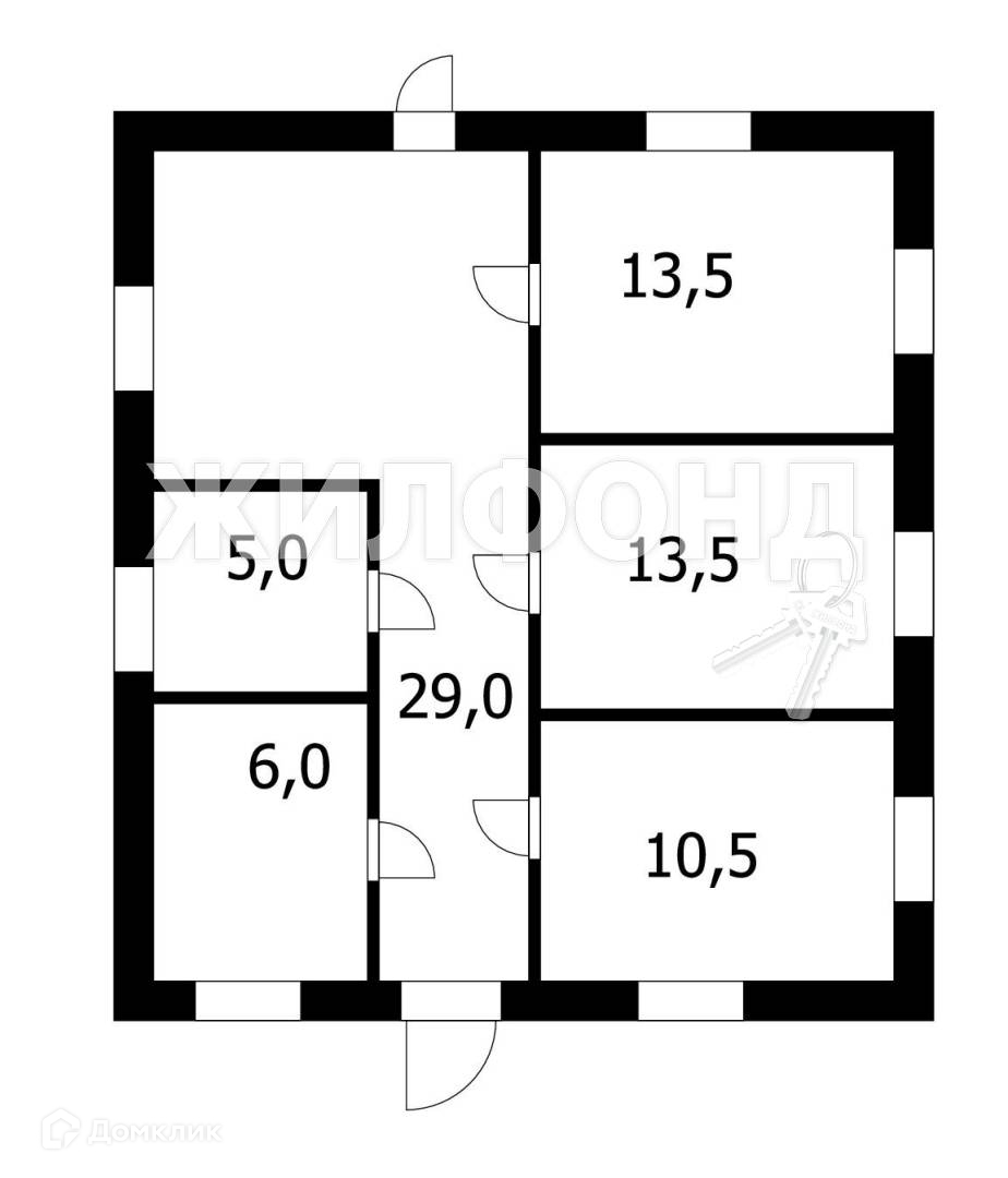 - 3 изолированные комнаты 13,5 кв.м 13,5 кв.м и 10,5 кв.м. и кухня-гостиная 17,6 кв.м. с выходом на приусадебную территорию.