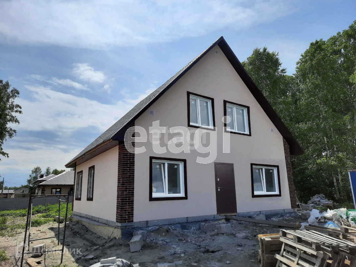 Участок 5 соток (20х25м)! Дом устроен на утепленном монолитном фундаменте, внешние стены – полистеролбетон 300 мм (по теплопроводности соответствует 500мм дерева!). Размеры дома 10*10 метров с мансардным этажем. Площадь дома 150м.кв. 3 спальных комнаты, гостиная, кухня, два с/узла, гардеробная, гараж Электричество заведено в дом, вода централизована - с артезианских скважин поселка. Снаружи штукатурка декоративная с декорированием камнем по углам, полы выровнены под ламинат, слив индивидуальный, отопление жидкостное на электрокотле с возможностью подключения газового, 1й этаж - теплый пол, 2й -радиторы. Газ подведен к участку но не оплачен. Водопровод, эл./разводка, входная дверь повышенной утепленности, автоматические ворота. Дом сдается в сентябре 23г. под чистовую отделку с выравниванием всех стен, разводкой коммуникаций (электрика, вода, вентиляция, слив). По отдельной договоренности возможна чистовая отделка. Дом оформлен как жилой: прописка, ипотека в любом банке. Торг возможен.