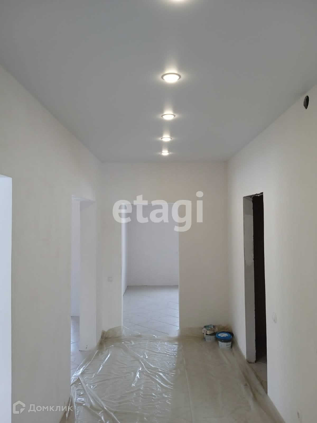 В доме сделана стяжка пола, оштукатурены стены, натяжные потолки