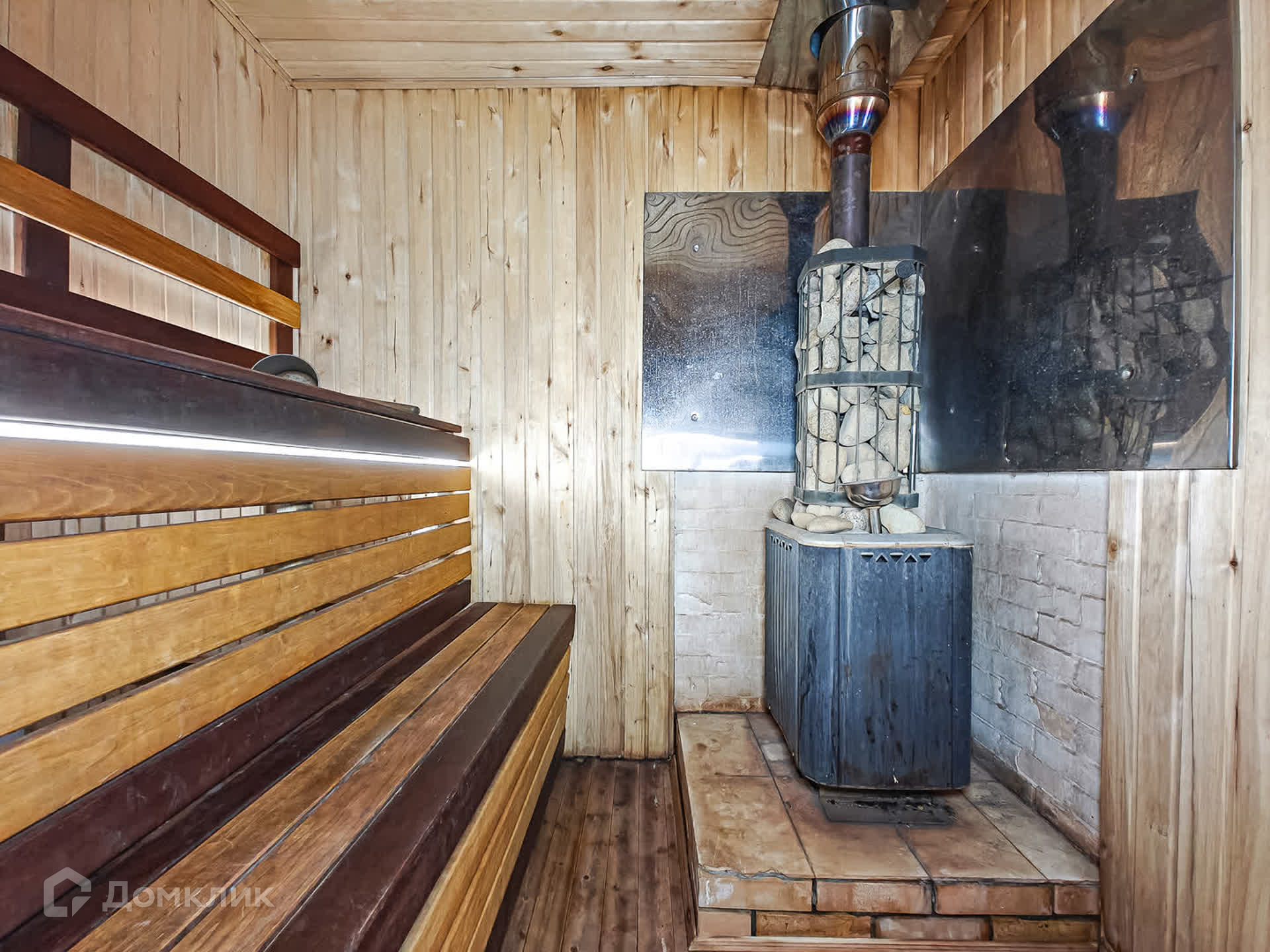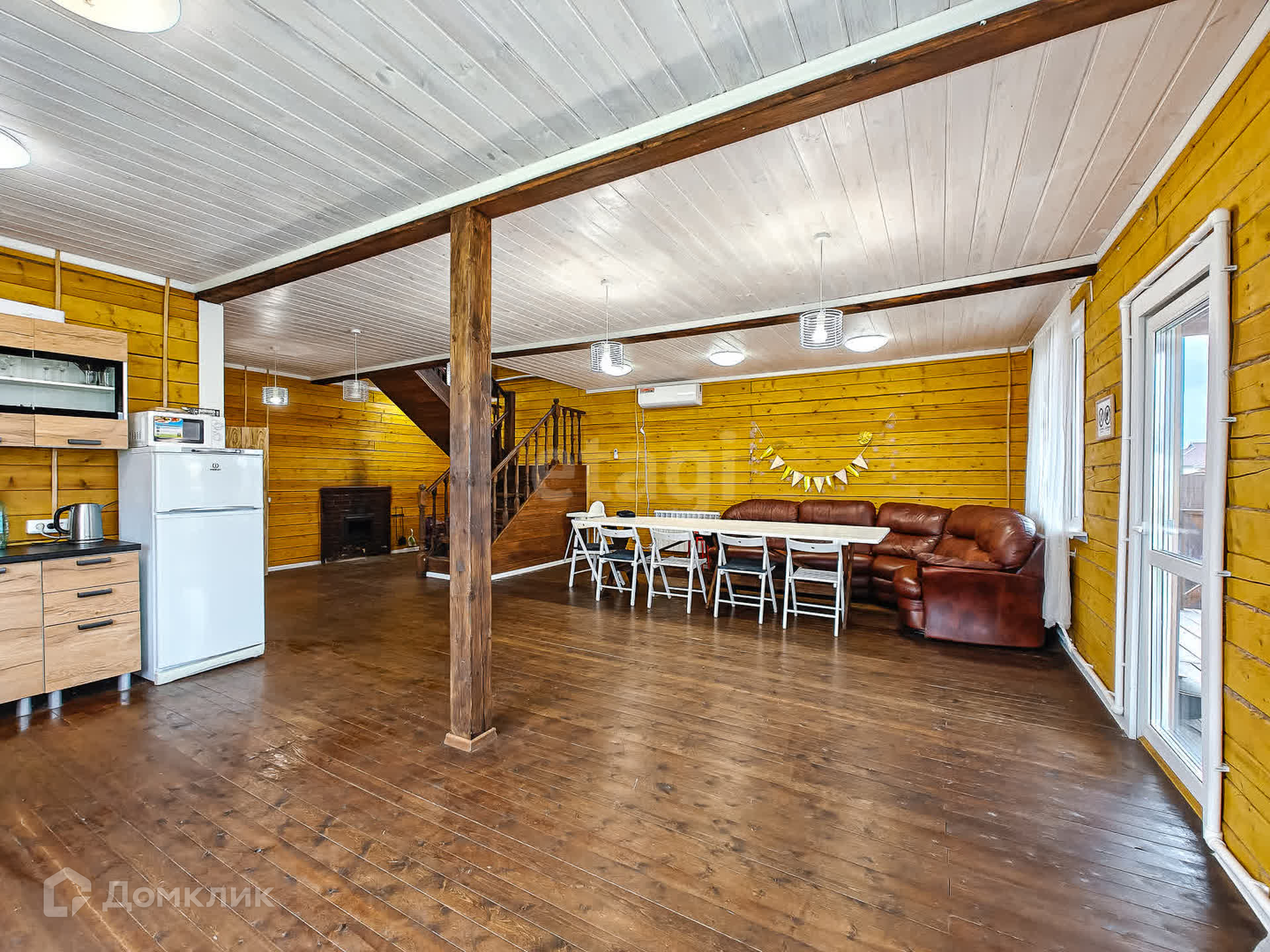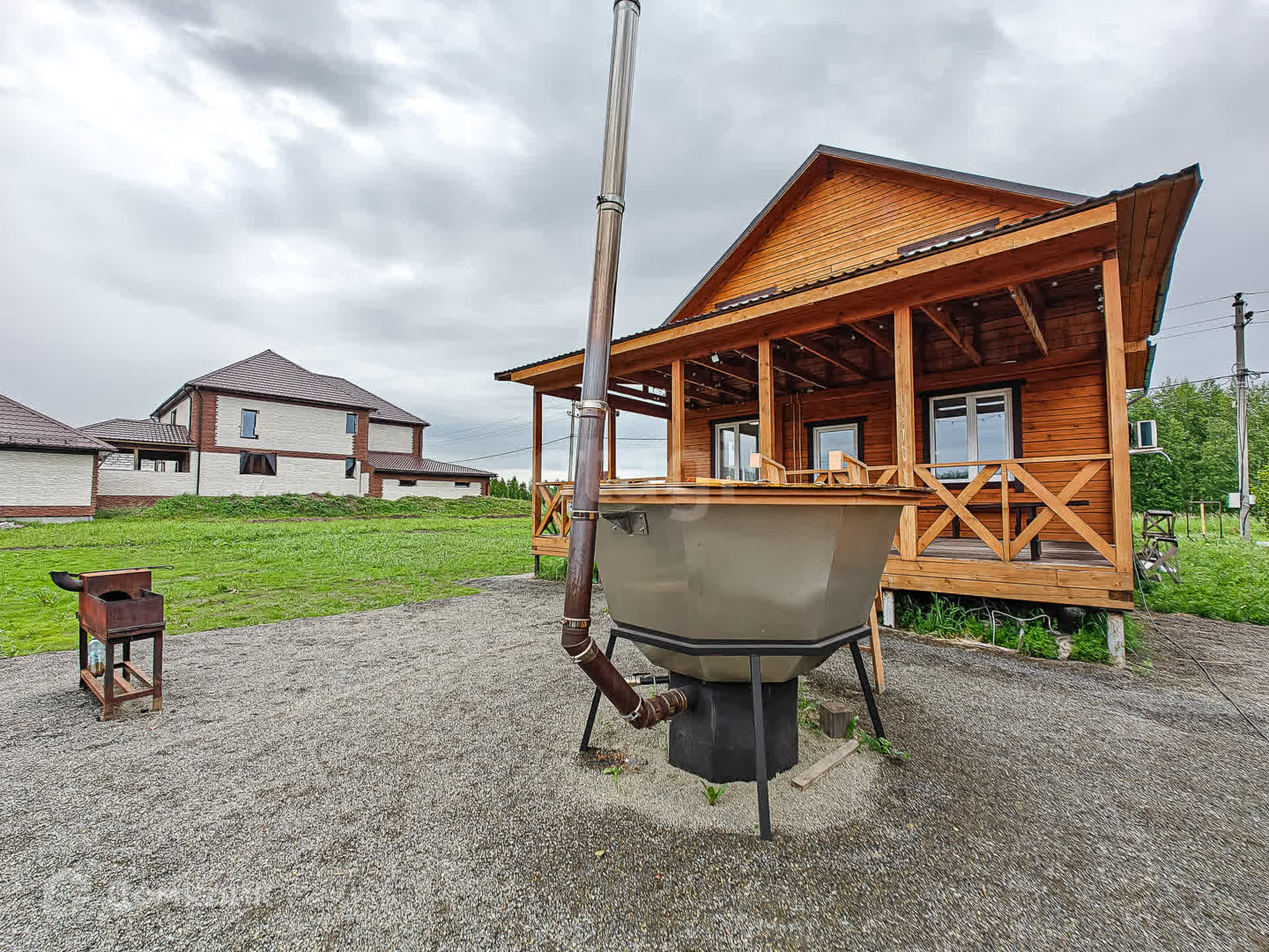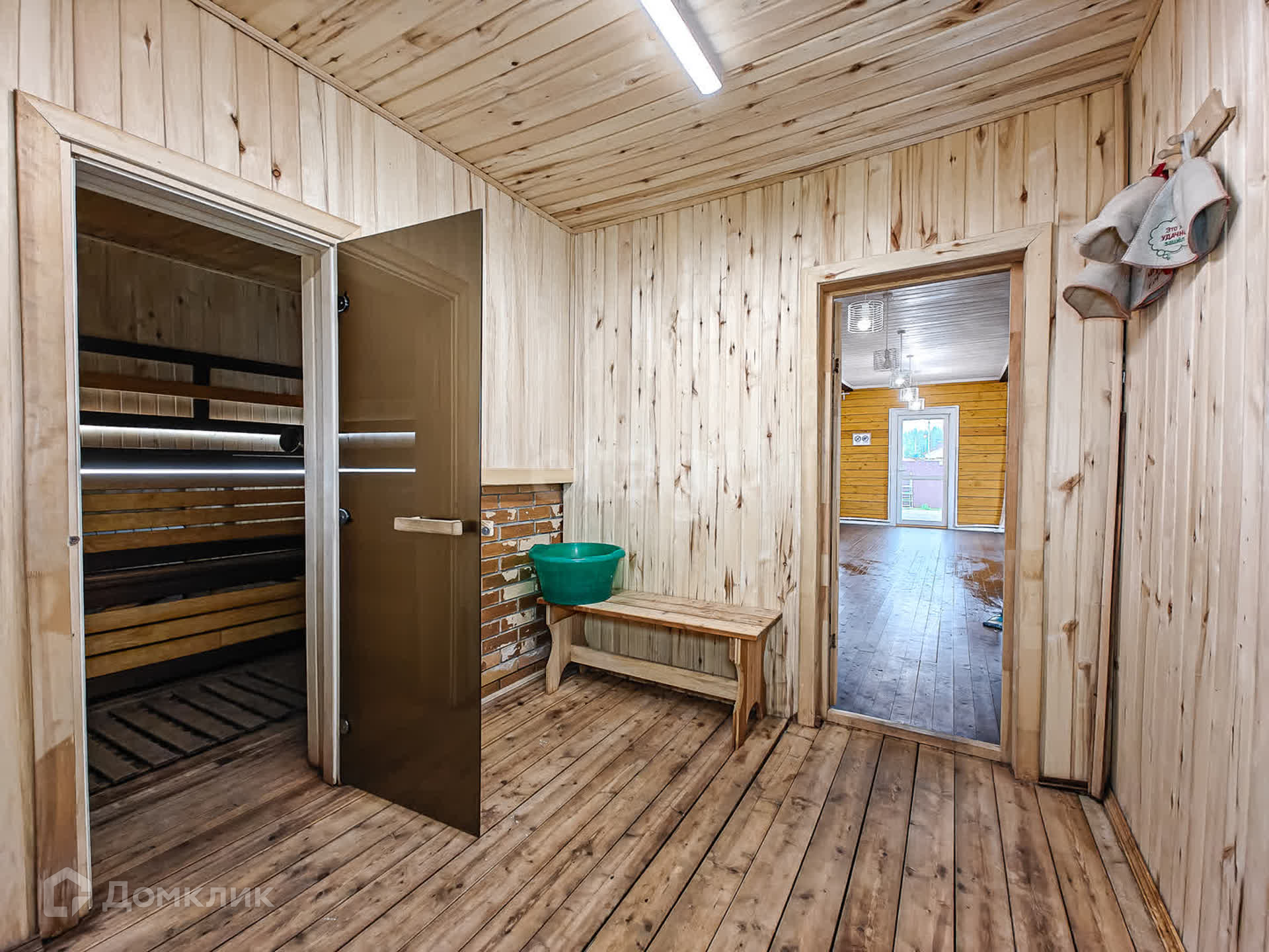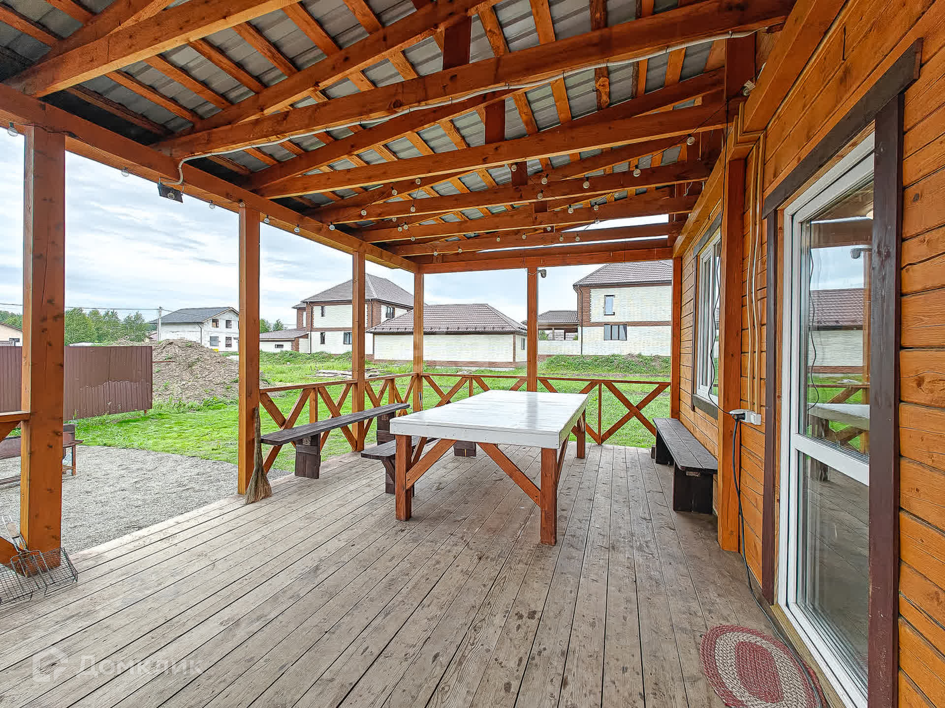 Первый этаж в доме - котельная, с/узел, большая кухня-гостиная и баня с большим предбанником. Из гостиной - выход на просторную террасу.